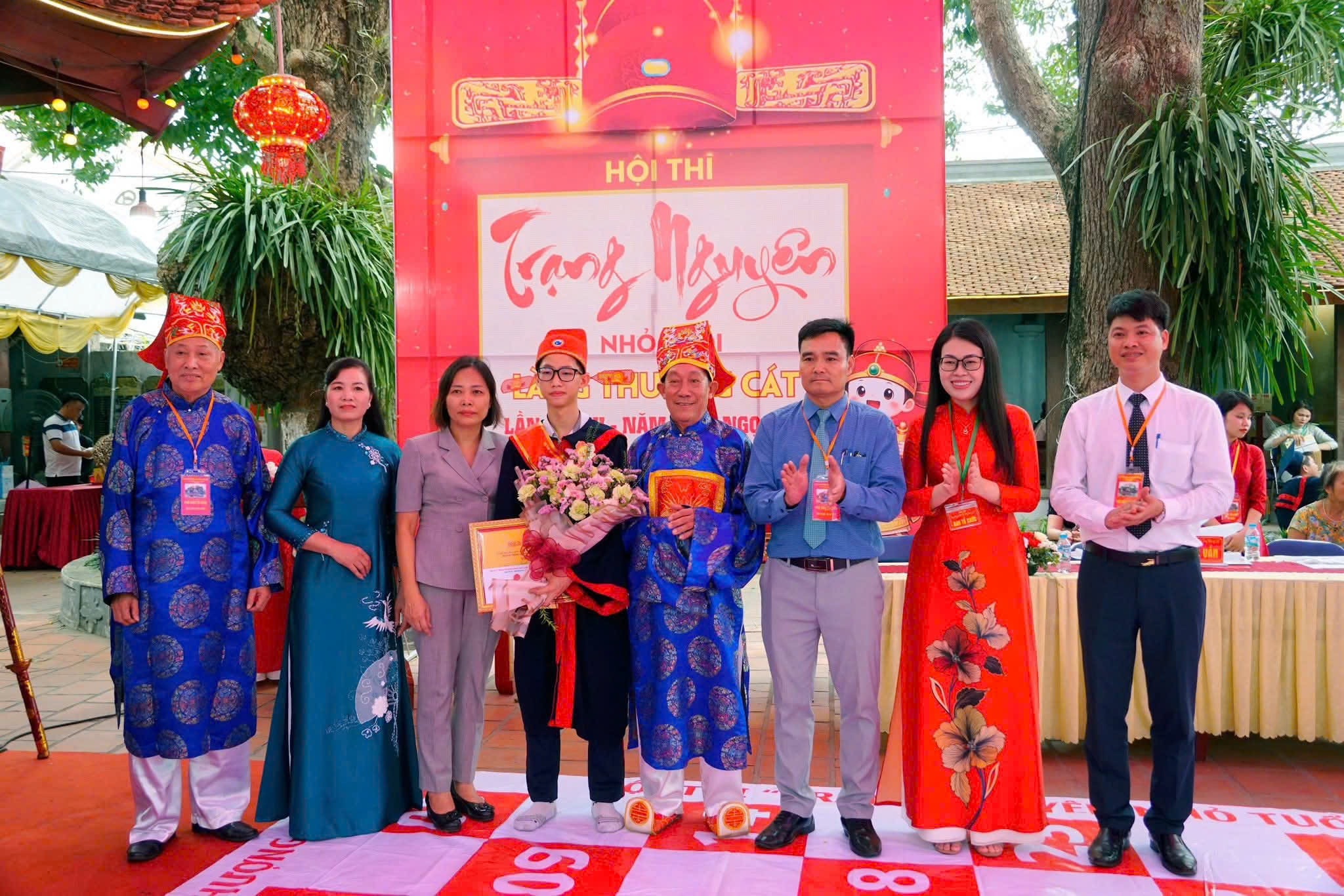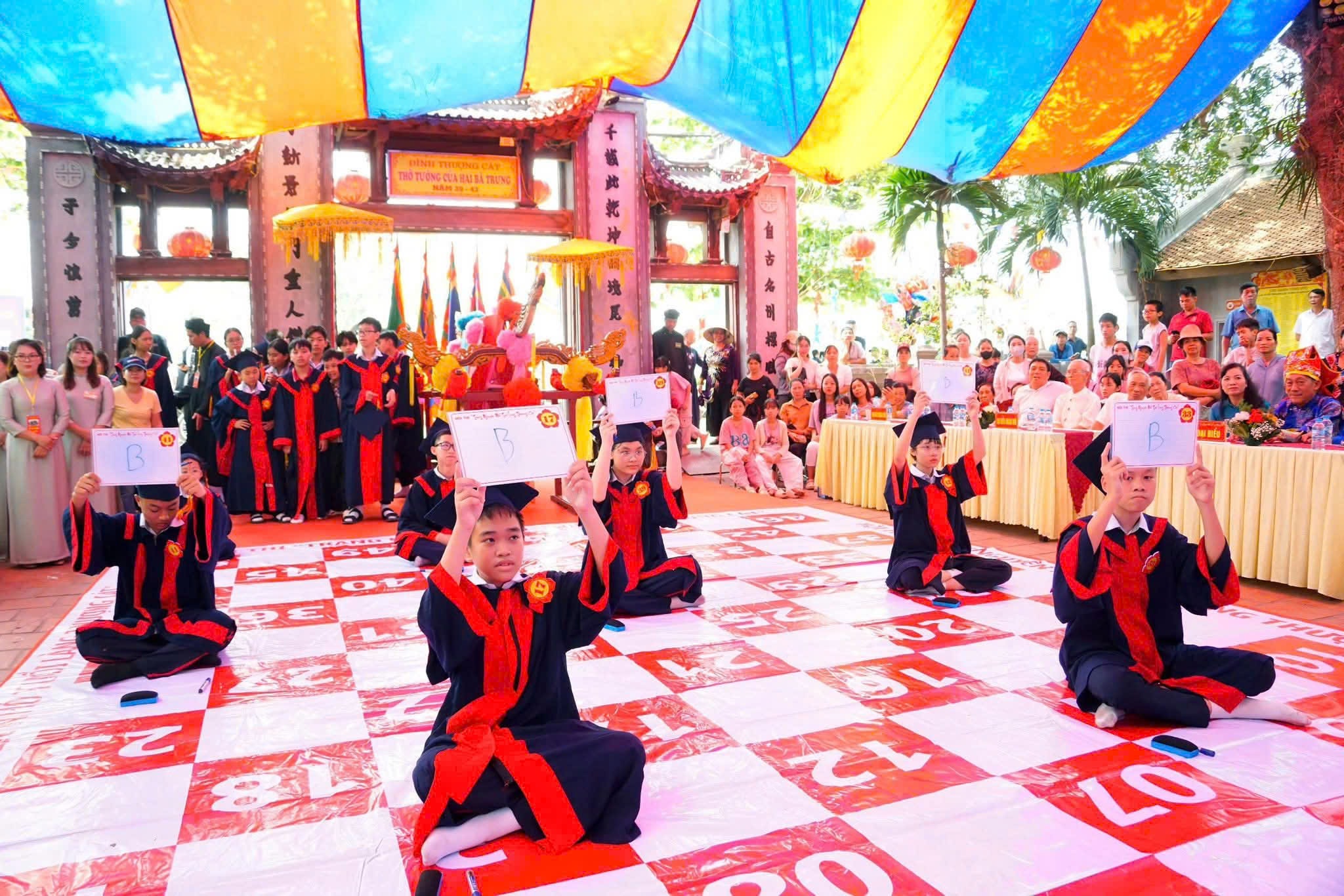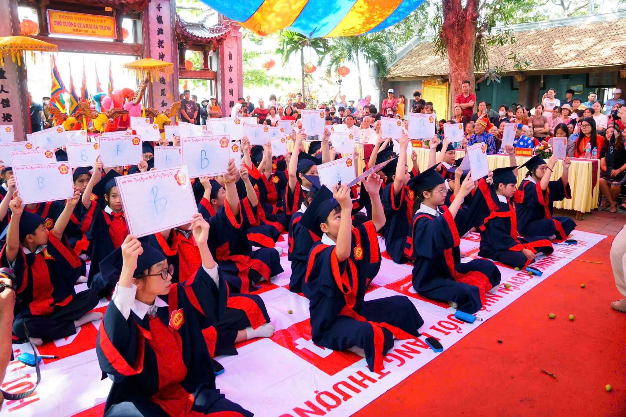 Song hành với không khí sôi động trên mặt nước là không gian trang nghiêm tại đình làng, nơi diễn ra hội thi “Trạng nguyên nhỏ tuổi làng Thượng Cát” lần thứ III – điểm nhấn giàu giá trị giáo dục trong chuỗi hoạt động lễ hội.