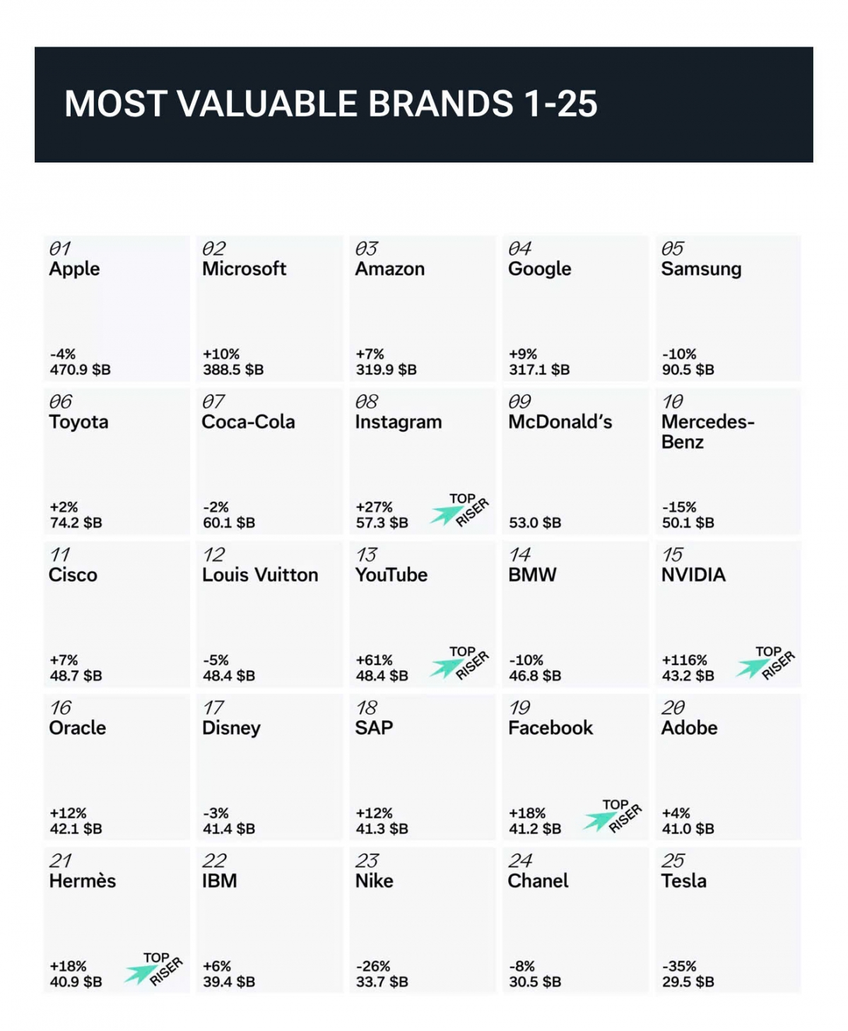 Như thường lệ hàng năm, Interbrand lại công bố bảng xếp hạng những thương hiệu giá trị nhất thế giới. Bảng xếp hạng này được xây dựng từ ba yếu tố cốt lõi để phản ánh giá trị thực sự của thương hiệu. Thứ nhất là phân tích tài chính, giúp xác định lợi nhuận kinh tế mà thương hiệu mang lại cho doanh nghiệp.