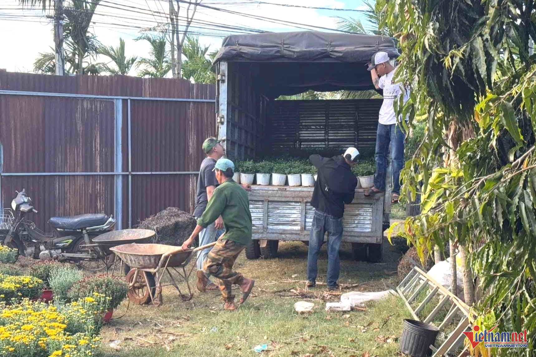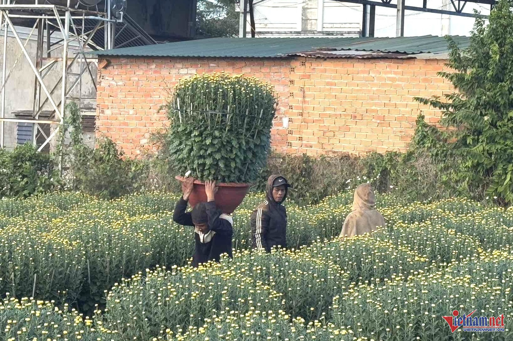 Tương tự, ông Nguyễn Thái Hiệp – chủ vườn cúc hơn 3.500 chậu cho biết, năm nay thời tiết thuận lợi nên hoa rất đẹp; vườn nhà ông đã được thương lái mua sạch cách đây 2 tháng. Giờ chỉ còn việc thuê người bốc hàng lên xe cho thương lái nữa là xong.