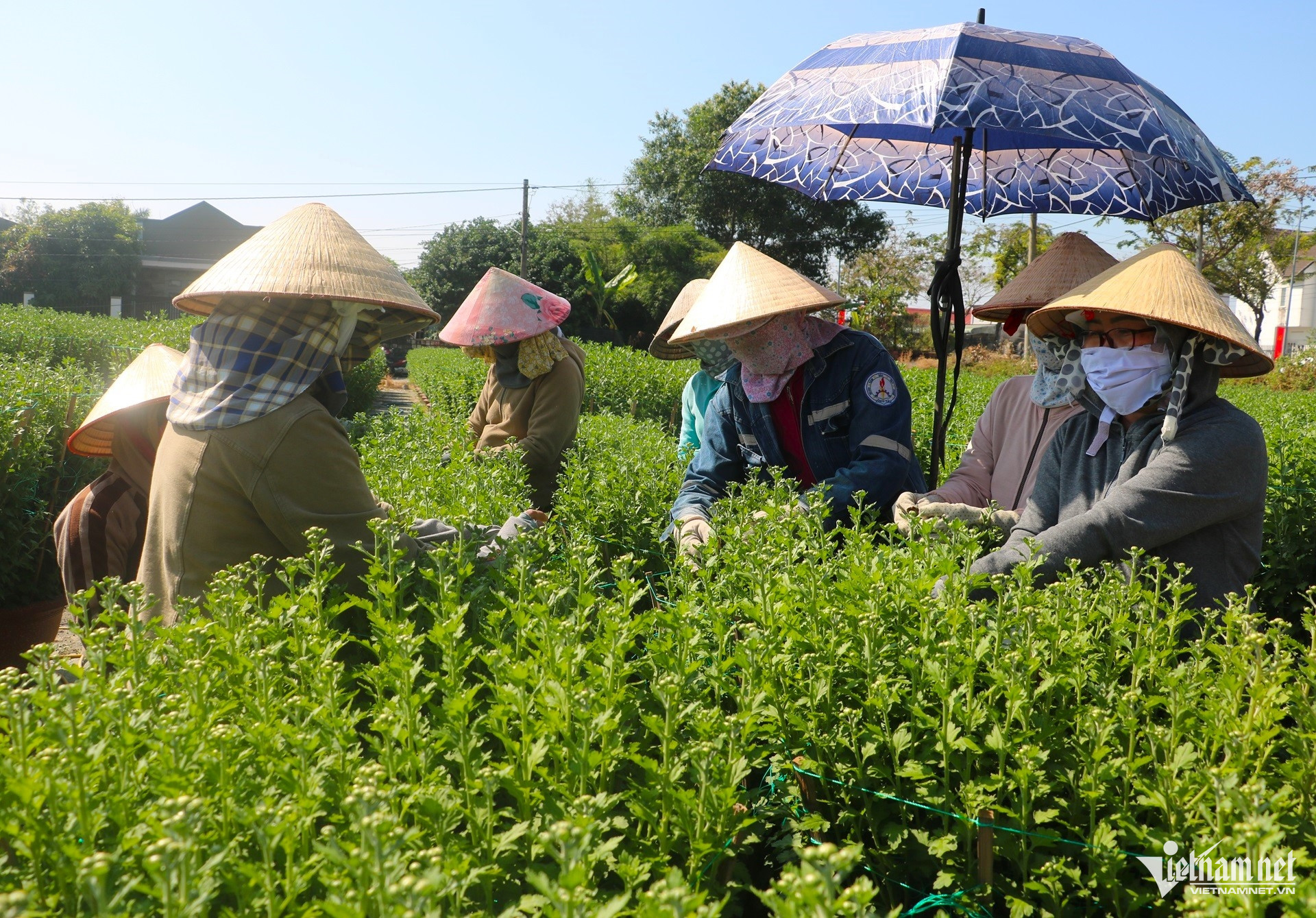 Cách đó không xa, ông Nguyễn Tấn Vinh, chủ vườn trồng hơn 3.000 chậu cúc đại đóa và cúc pha lê, cũng đang cùng nhân công tất bật chăm sóc hoa cho vụ Tết. Theo ông Vinh, để hoa đạt chất lượng cao, bông to, thân mập, người trồng phải chú trọng chăm sóc ngay từ tháng đầu tiên xuống giống, qua đó nâng giá trị thương phẩm.