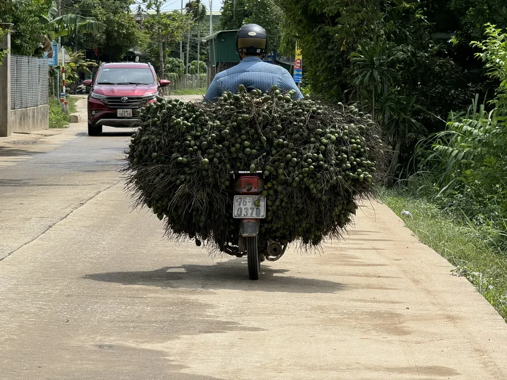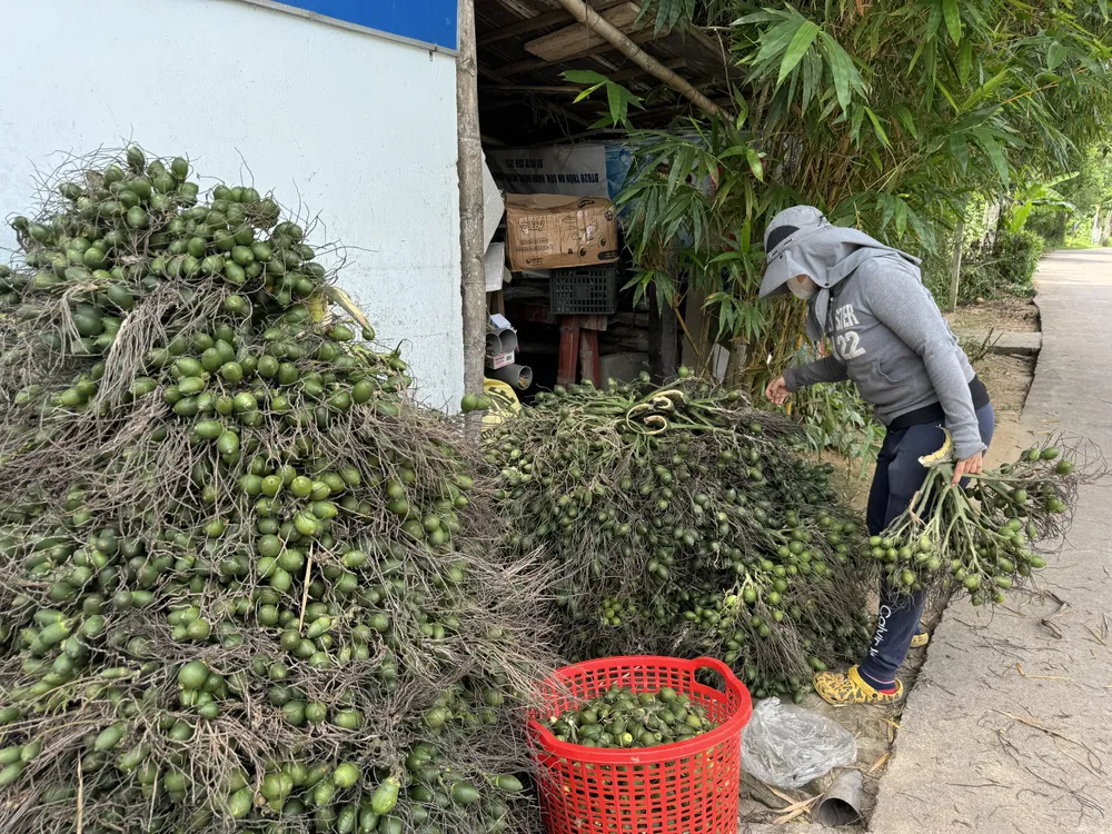Giữa vụ thu hoạch chính, nhiều nhà vườn ở Quảng Ngãi như ngồi trên đống lửa khi giá cau tươi chỉ còn 12.000 – 13.000 đồng/kg, trong khi cùng kỳ năm ngoái lên đến 70.000 – 85.000 đồng/kg. Nhiều vườn cau trĩu quả giờ chỉ lác đác người hái, lựa từng chùm cau trái dài để kịp bán cho thương lái.