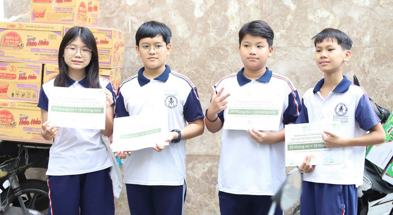 Những em học sinh Thành phố cũng mong muốn được góp một phần nhỏ sẻ chia với đồng bào ta đang gặp khó khăn.