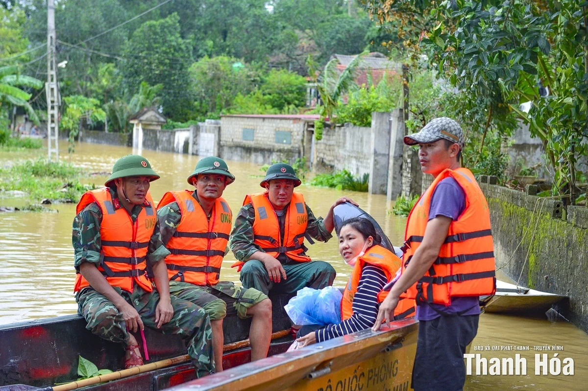 Mưa càng to, những con số thiệt hại cứ thay đổi theo từng giờ, từng phút. Các cơ quan chức năng tỉnh Thanh Hóa đã huy động hết mọi nhân lực, vật lực để ứng phó với bão lũ. Nhiều cán bộ, chiến sĩ không quản ngày đêm, không sợ hiểm nguy lao vào dòng nước lũ cứu người, tổ chức sơ tán dân, nhất là người già, trẻ nhỏ khỏi các khu vực nguy hiểm đến nơi an toàn. Sau nhiều giờ dầm mình trong mưa lũ, các anh chỉ kịp lót dạ bằng một miếng lương khô, một mẩu bánh mì hay miếng mì tôm sống rồi lại vội vã vận chuyển nhu yếu phẩm, đồ tiếp tế, hỗ trợ y tế đến các khu vực bị cô lập, giúp người dân ổn định cuộc sống tạm thời, vượt qua khó khăn trước mắt.