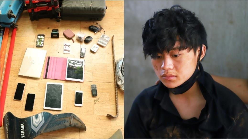 Lực lượng Công an bắt giữ đối tượng Hạng A Băng và thu giữ một số tang vật, đồ vật liên quan