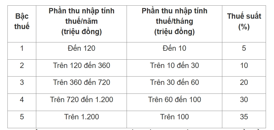 Thuế suất tại Biểu thuế lũy tiến từng phần quy định tại Điều 9 Luật Thuế thu nhập cá nhân 2025. Cụ thể: