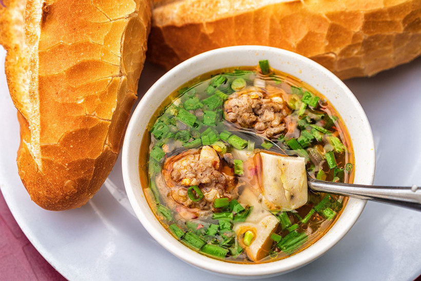 Lớp vỏ bánh mỳ giòn tan, bên trong mềm xốp, khi ăn kèm với xíu mại thơm ngon lại càng khiến vị giác thêm phần thú vị. Nước xíu được ninh kỹ từ xương heo, mang đậm vị ngọt tự nhiên và mằn mặn đặc trưng.