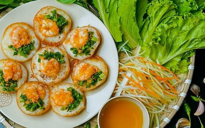 Vỏ bánh được làm từ bột gạo, nướng vàng giòn trong những khuôn đất nung truyền thống, khiến lớp bánh bên ngoài giòn rụm nhưng lại giữ được sự mềm mại bên trong. Phần nhân bánh được biến tấu đa dạng với các loại như trứng vịt, trứng cút, hải sản hoặc thậm chí là thịt bằm để phù hợp với khẩu vị từng thực khách.
