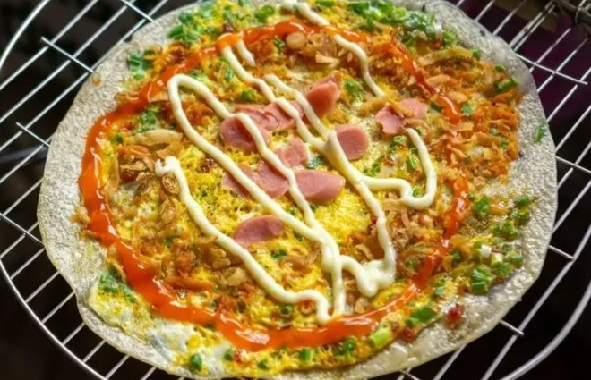 Lớp bánh giòn rụm, được phủ bên trên những loại topping đa dạng như trứng, hành phi, phô mai hay thịt băm. Thưởng thức món ăn này giữa những làn khói than nghi ngút không chỉ ấm áp mà còn mang lại cảm giác đầy thú vị.