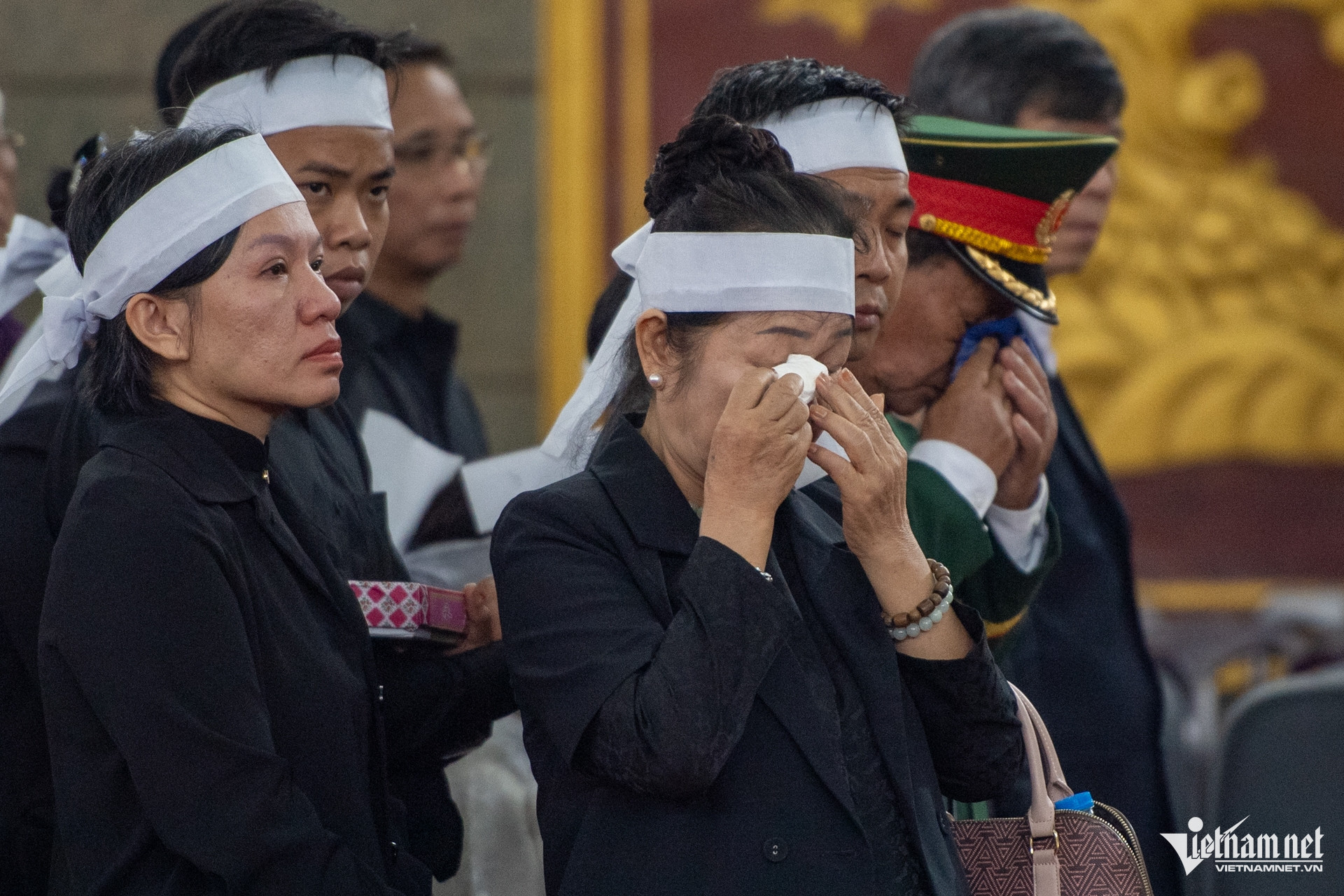 Gia đình của Đại tướng Lê Văn Dũng xúc động, dõi theo linh cữu người chồng, người cha, người ông được đưa về nơi an nghỉ cuối cùng.