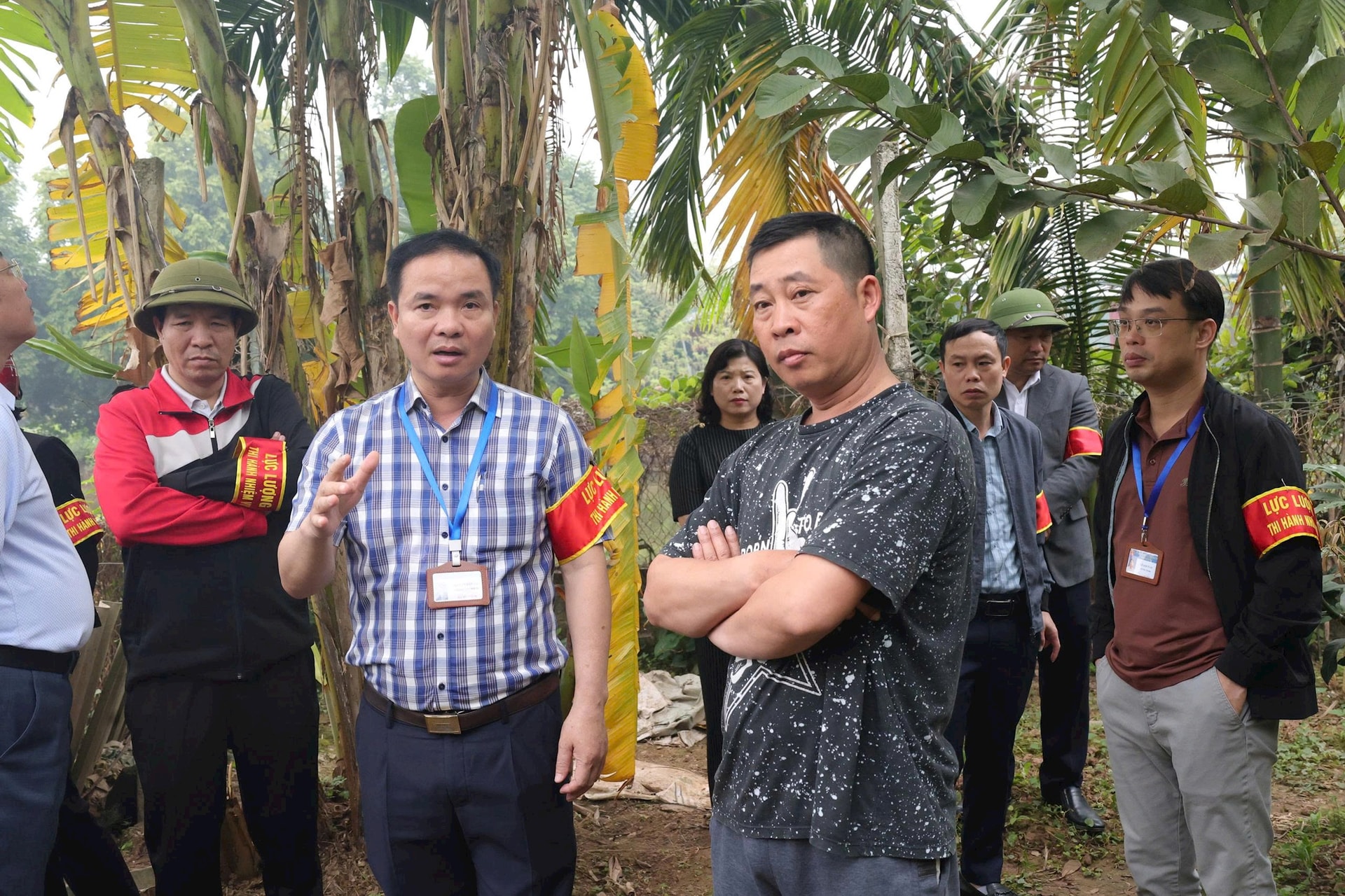 Phó Chủ tịch UBND xã Thường Tín Nguyễn Văn Tản trao đổi, yêu cầu ông Chiện phối hợp với cơ quan chức năng thực thi nhiệm vụ. Ảnh: Công Tâm