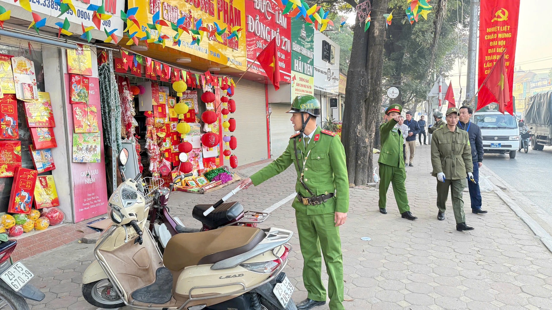 Đối với trật tự an toàn giao thông, tổ chức tuần tra, kiểm soát, kiểm tra và xử lý nghiêm các hành vi vi phạm pháp luật về trật tự an toàn giao thông, tập trung vào các hành vi: Dừng, đỗ phương tiện trái quy định trên lòng đường, vỉa hè; đón, trả khách không đúng nơi quy định; lấn chiếm hành lang an toàn giao thông đường bộ để kinh doanh, tập kết vật liệu, đặt biển quảng cáo; tổ chức họp chợ, buôn bán gây cản trở giao thông; kiên quyết giải tỏa các điểm vi phạm phức tạp, tồn tại kéo dài; xử lý nghiêm trường hợp cố tình vi phạm, tái phạm nhiều lần theo quy định của pháp luật.