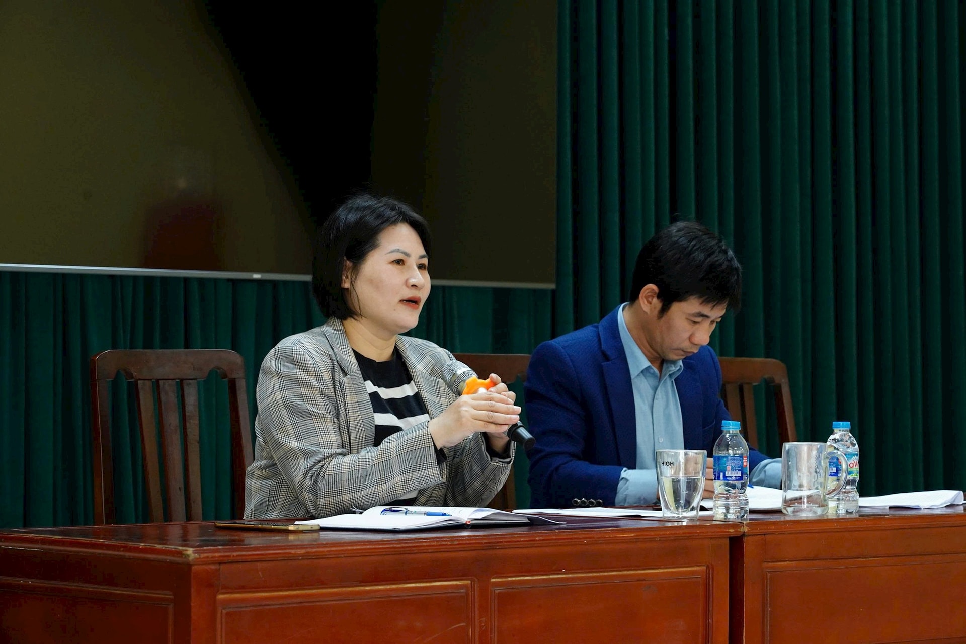 Phó Chủ tịch UBND xã Thường Tín Uông Thị Phượng phát biểu tại hội nghị. Ảnh: Tô Quý