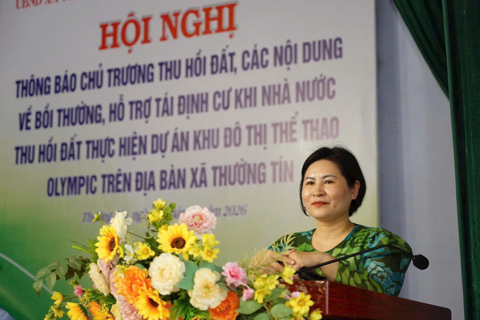 Phó Chủ tịch UBND xã Thường Tín Uông Thị Phượng mong muốn các hộ gia đình, cá nhân ủng hộ, chấp thuận việc bồi thường cùng tham gia giám sát, thực hiện giải phóng mặt bằng để bảo đảm tiến độ triển khai phương án chi trả tiền đền bù giải phóng mặt bằng theo quy định và sớm bàn giao đất để đơn vị nhà thầu thi công dự án.