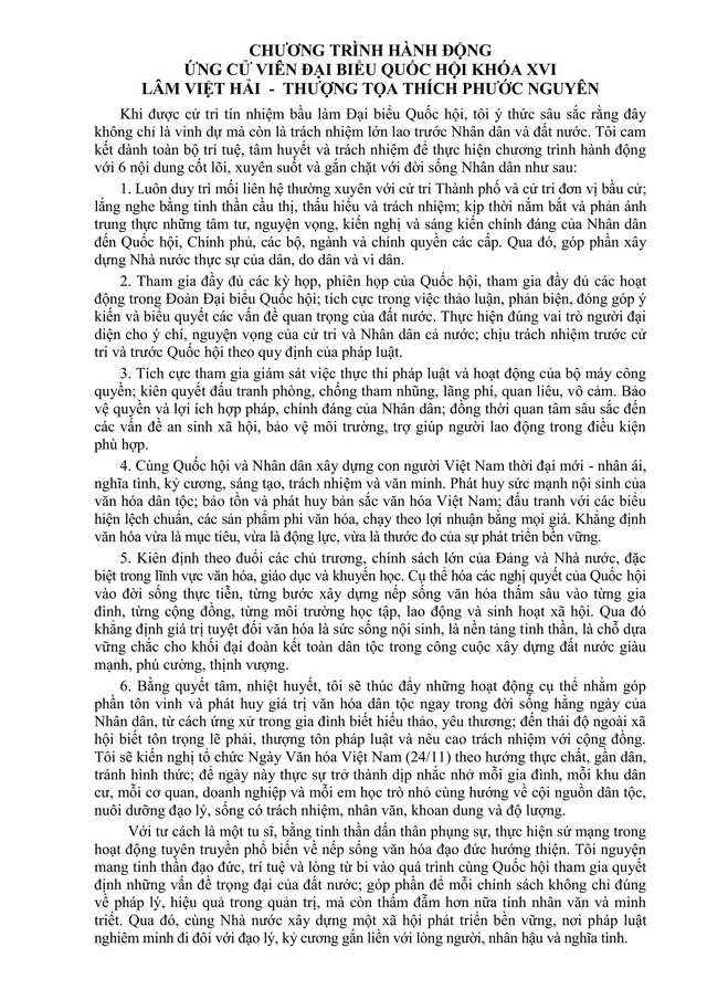Ông Lâm Việt Hải (Thượng tọa Thích Phước Nguyên), Phó Tổng Thư ký Hội đồng trị sự – Chánh Văn phòng 2 Trung ương Giáo hội Phật giáo Việt Nam, ứng cử đại biểu Quốc hội khóa XVI tại đơn vị bầu cử số 13 TP.HCM.