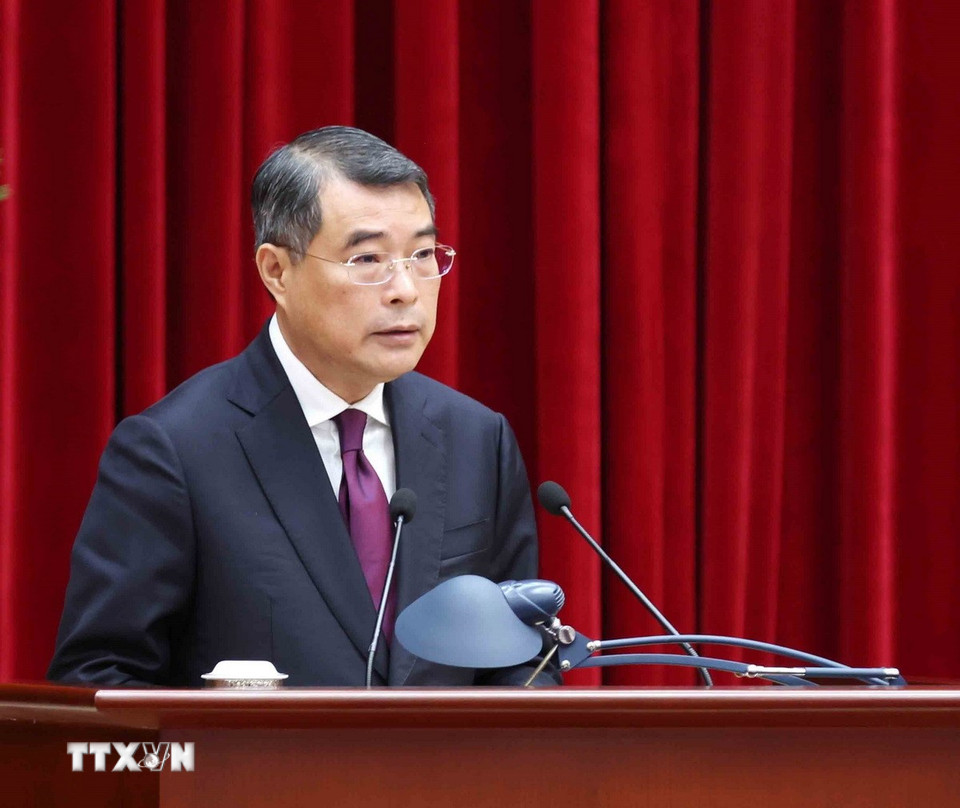 Đồng chí Lê Minh Hưng, Ủy viên Bộ Chính trị, Bí thư Trung ương Đảng, Trưởng Ban Tổ chức Trung ương phát biểu tại hội nghị. (Ảnh: Phương Hoa/TTXVN)