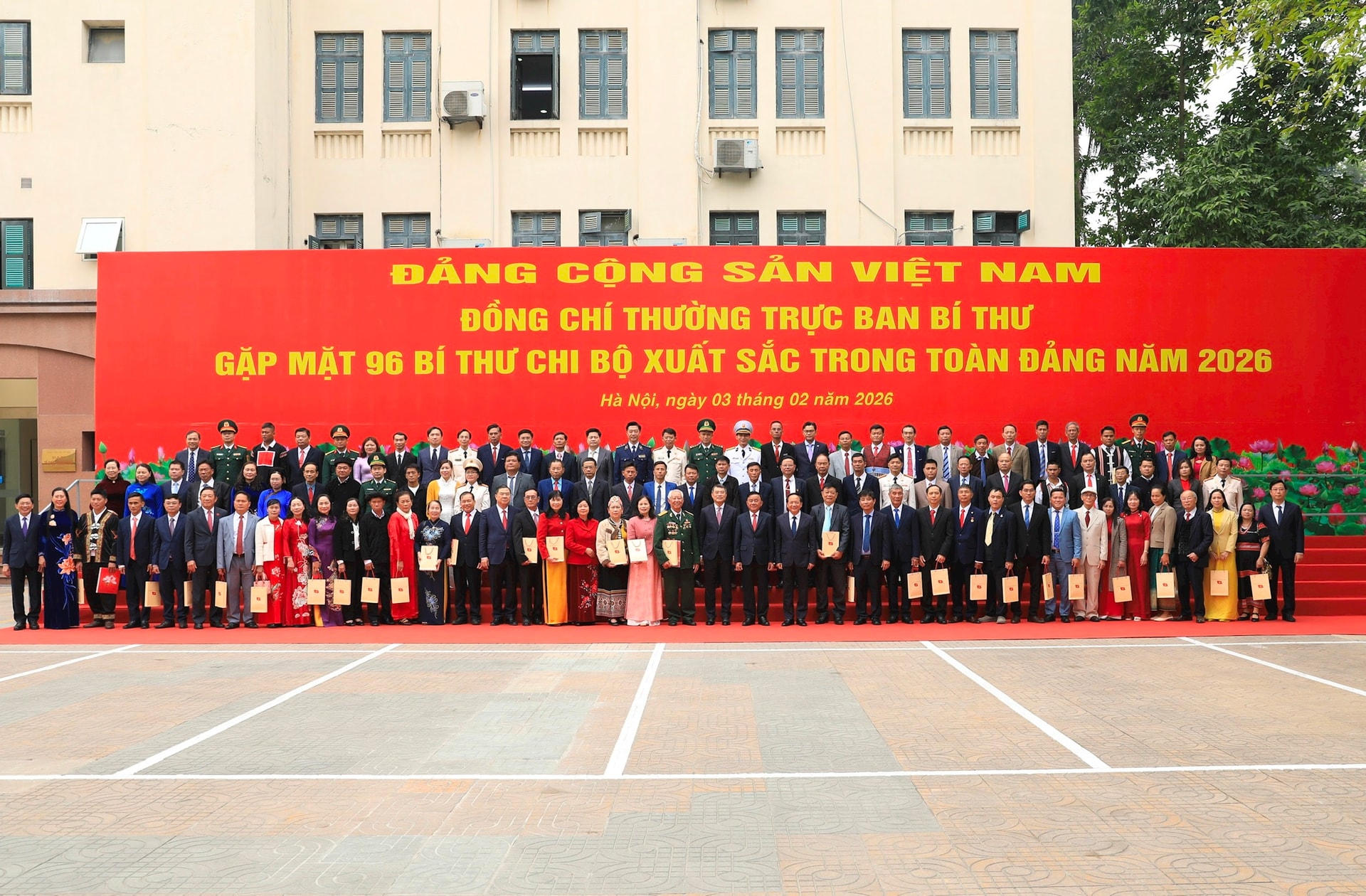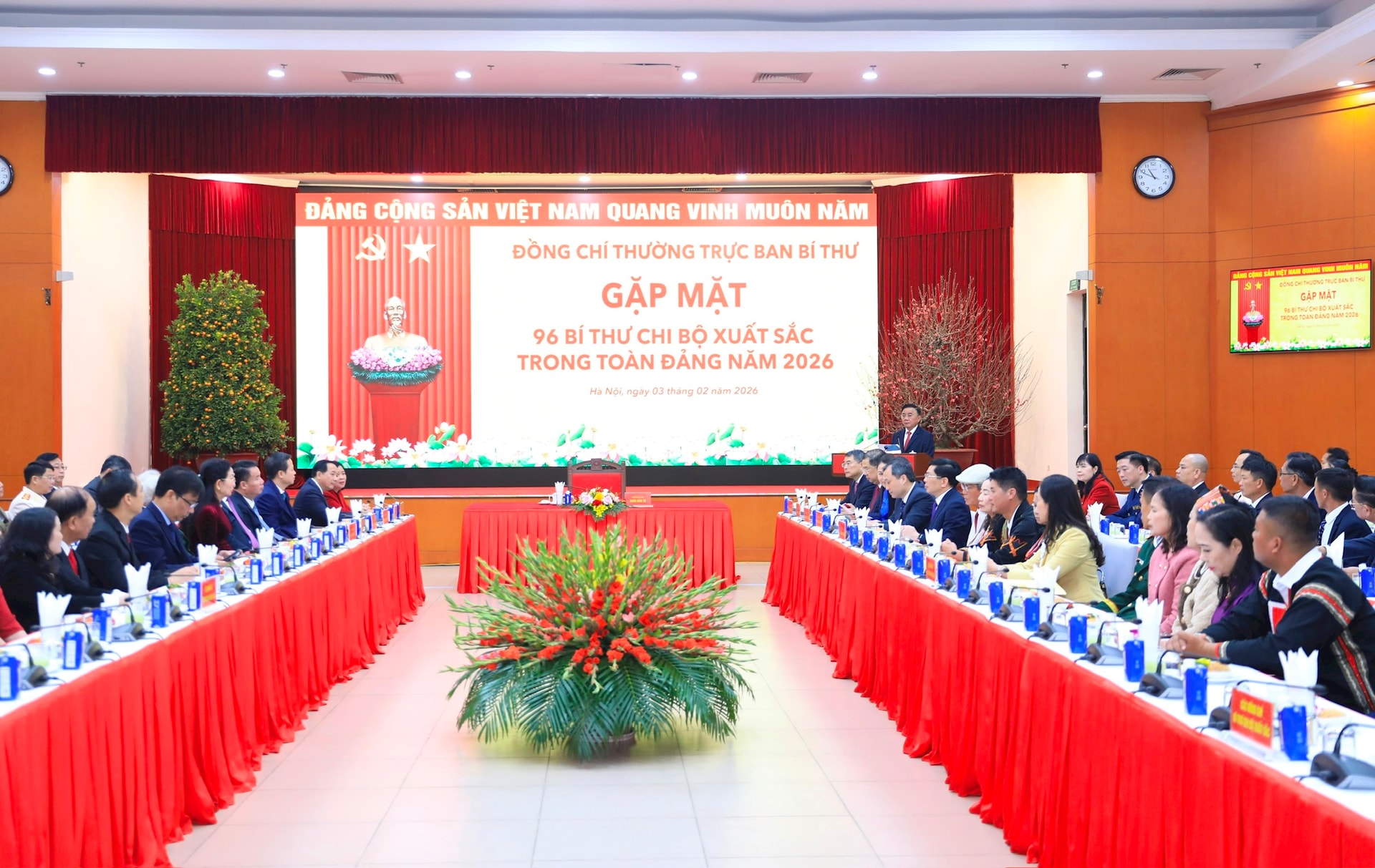Buổi gặp mặt có sự tham dự của 96 bí thư chi bộ xuất sắc năm 2026, đại diện cho đội ngũ bí thư chi bộ trong toàn Đảng.