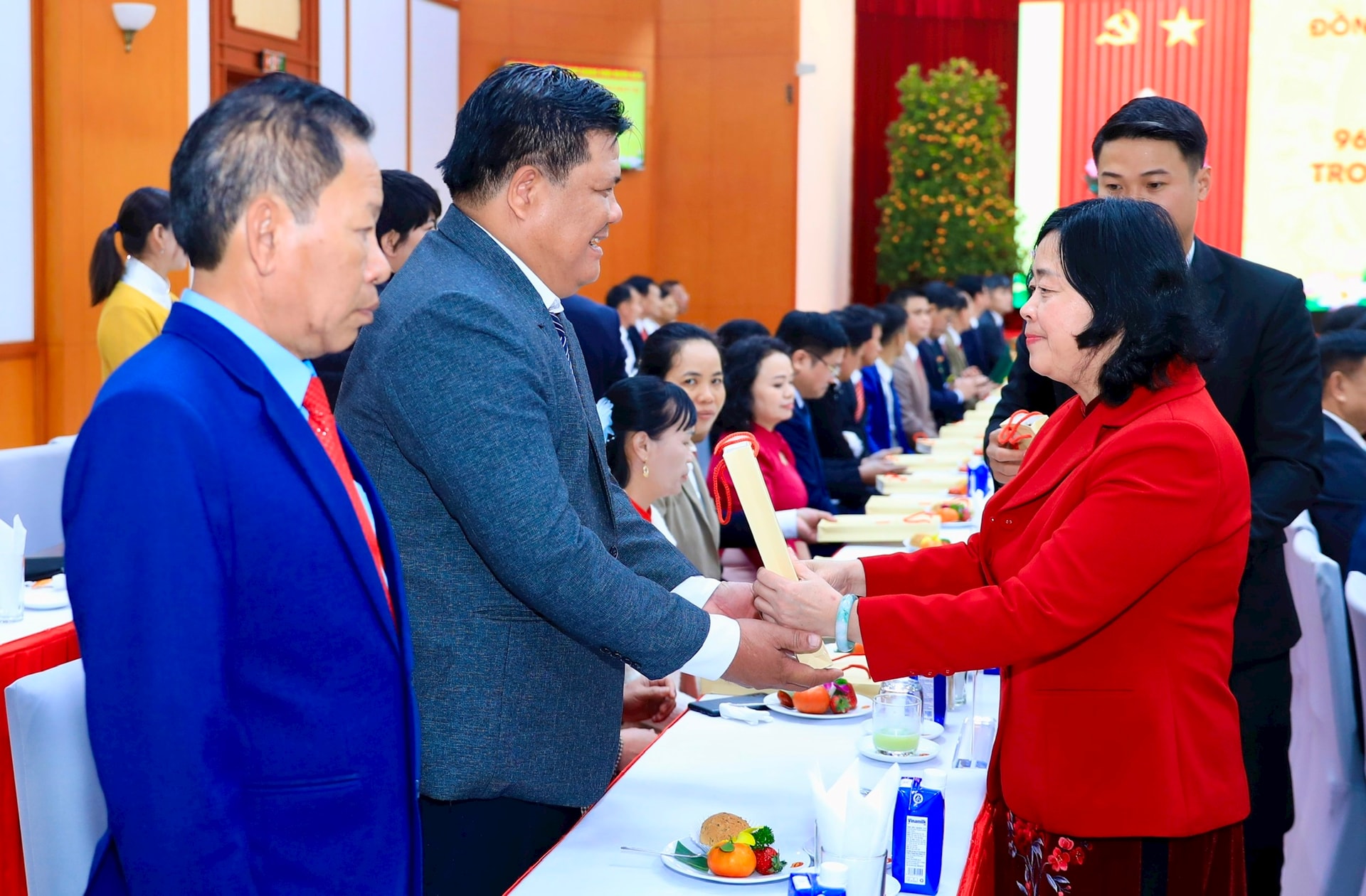 Thường trực Ban Bí thư Trần Cẩm Tú trao tặng quà của Tổng Bí thư Lô Lâm cho các bí thư chi bộ tiêu biểu trong toàn Đảng. Ảnh: Quang Thái