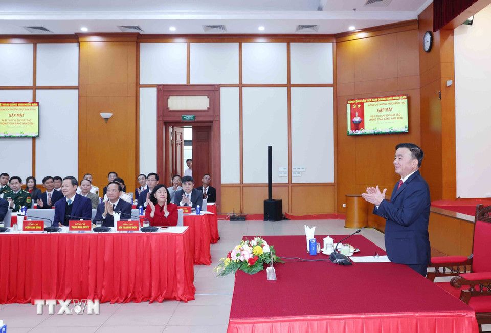 Thường trực Ban Bí thư Trần Cẩm Tú gặp mặt 96 Bí thư Chi bộ xuất sắc toàn quốc. (Ảnh: Phương Hoa/TTXVN)