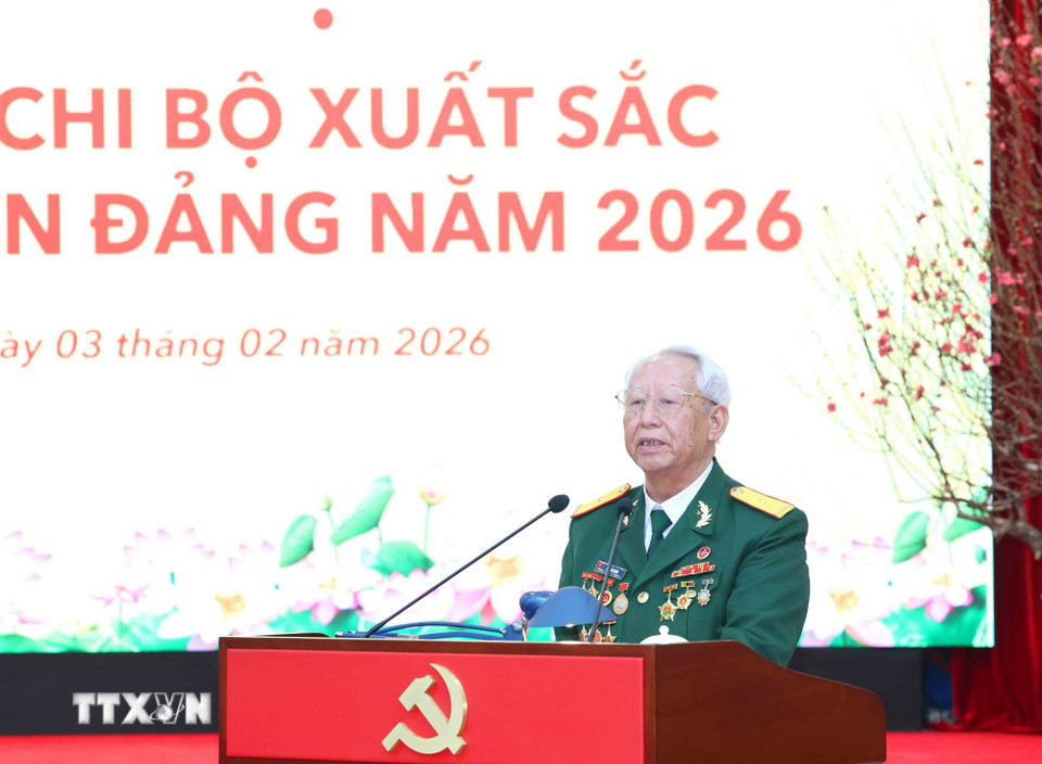 Thường trực Ban Bí thư Trần Cẩm Tú với các Bí thư Chi bộ xuất sắc toàn quốc. (Ảnh: Phương Hoa/TTXVN)