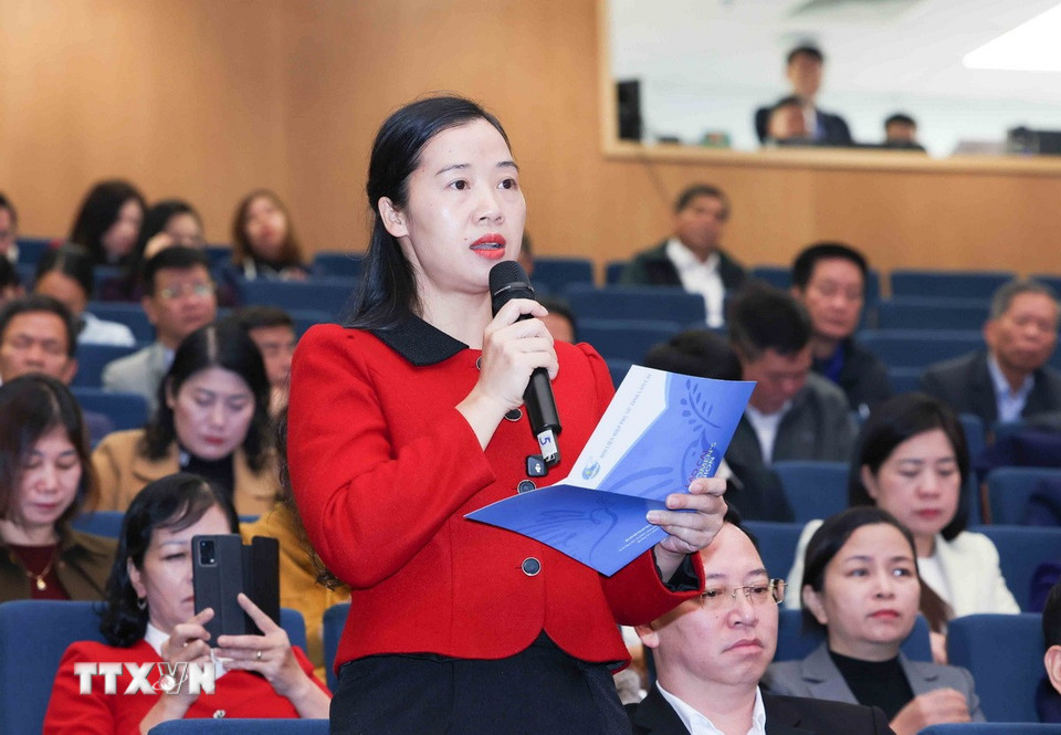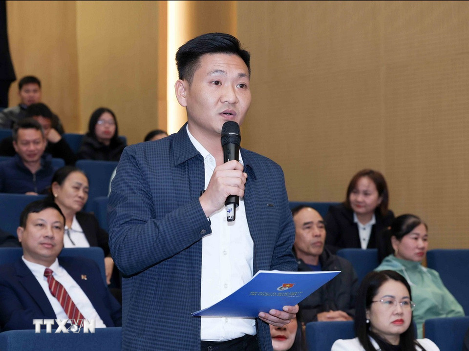 Cử tri Lương Xuân Quỳnh, phường Văn Phú, tỉnh Lào Cai đặt câu hỏi chất vấn. (Ảnh: Phương Hoa/TTXVN)