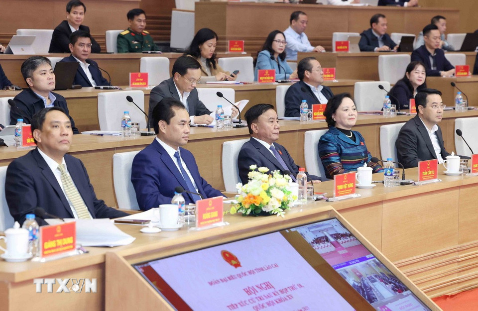 Các đại biểu tham dự Hội nghị tiếp xúc cử tri tỉnh Lào Cai sau Kỳ họp thứ 10. (Ảnh: Phương Hoa/TTXVN)