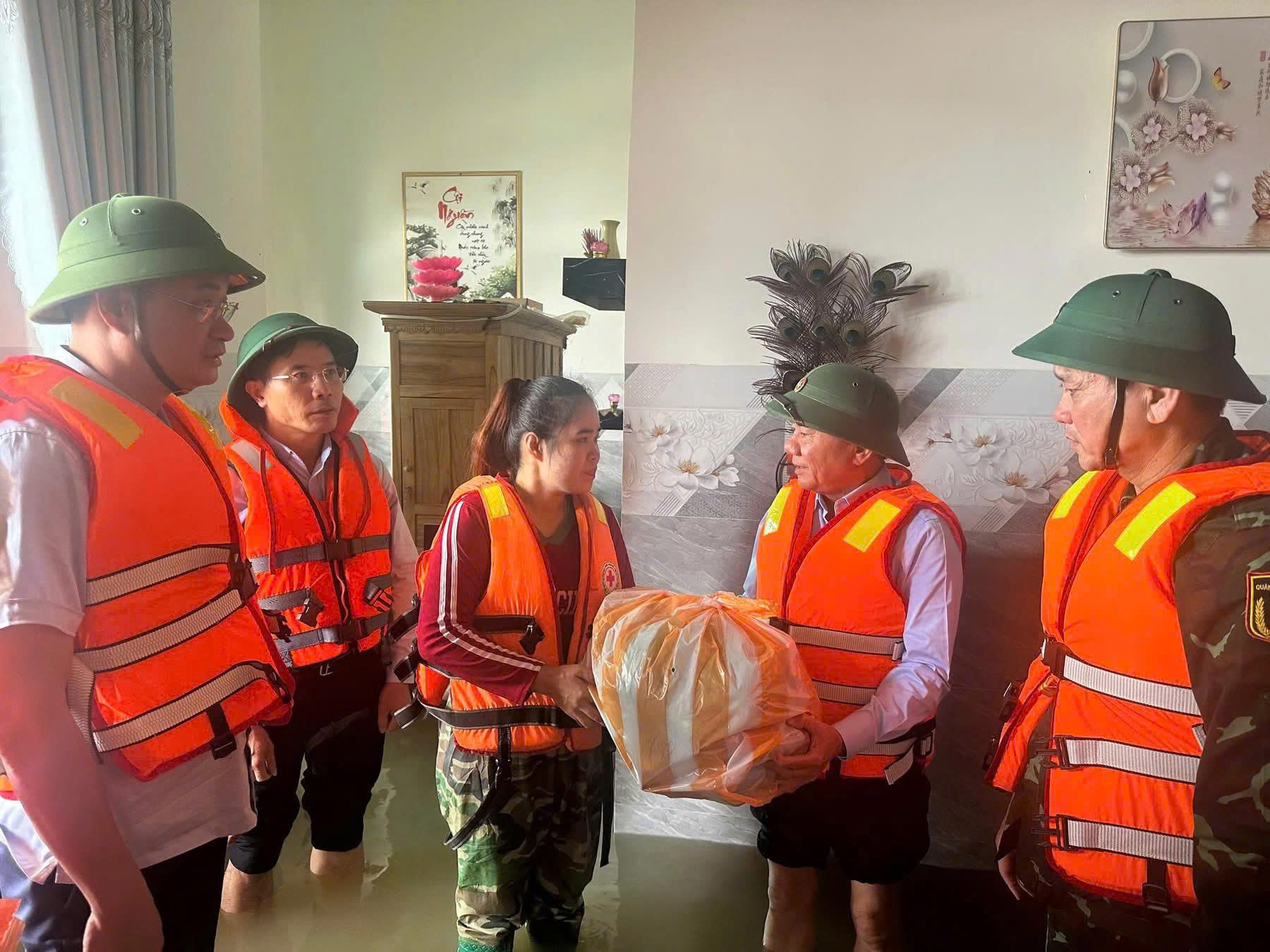 Đồng chí Trần Cẩm Tú tặng quà động viên người dân trong vùng bị lũ cô lập