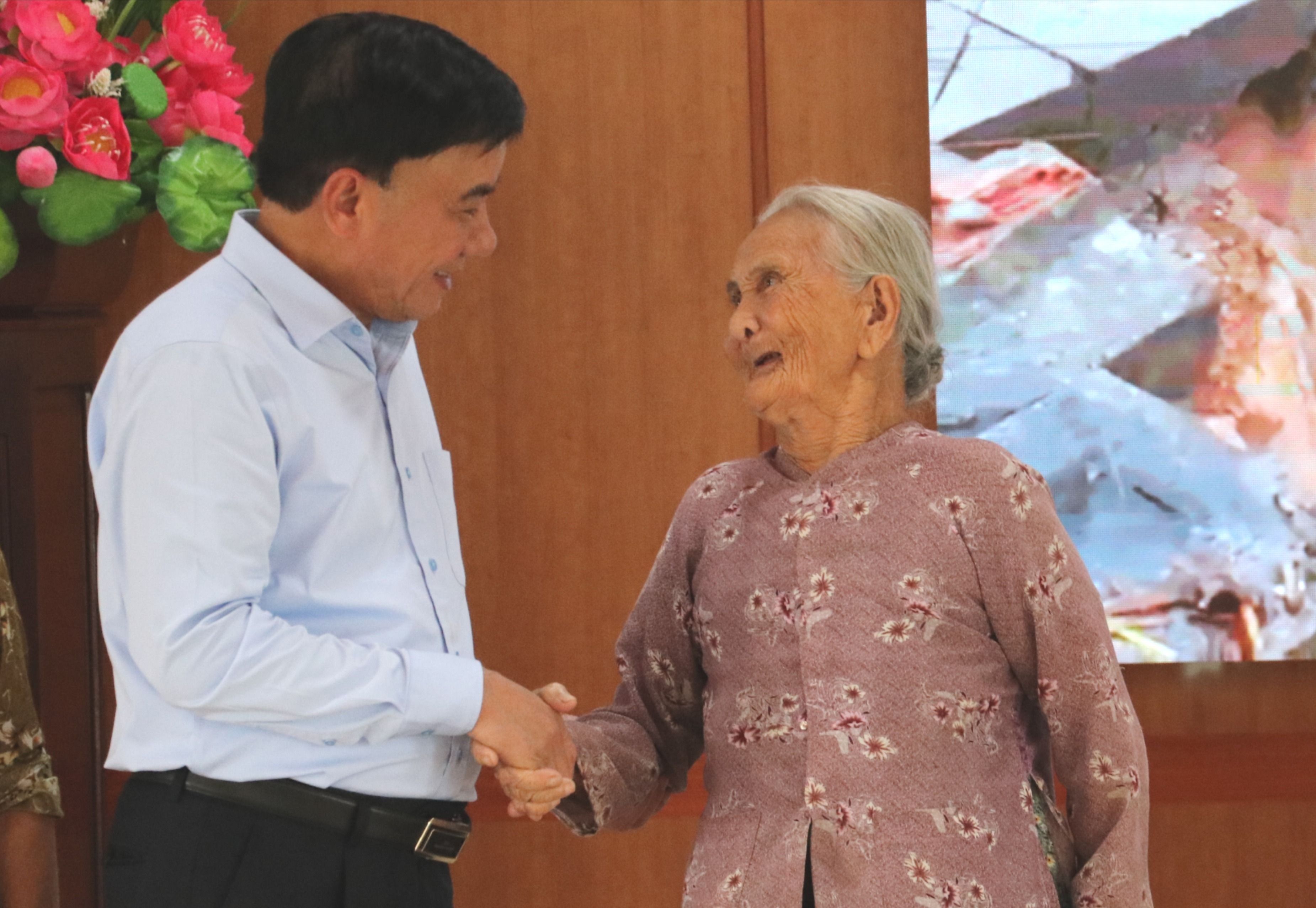 Cùng đi có các đồng chí: Hà Thị Nga, Phó Chủ tịch Ủy ban Trung ương MTTQ Việt Nam; Trung tướng Nguyễn Văn Gấu, Thứ Trưởng Bộ Quốc phòng; đại diện lãnh đạo Văn phòng Trung ương Đảng, Bộ Quốc phòng, Bộ Nông nghiệp và Môi trường, lãnh đạo Bộ Tư lệnh Quân khu 5 cùng các lãnh đạo của TP Đà Nẵng.