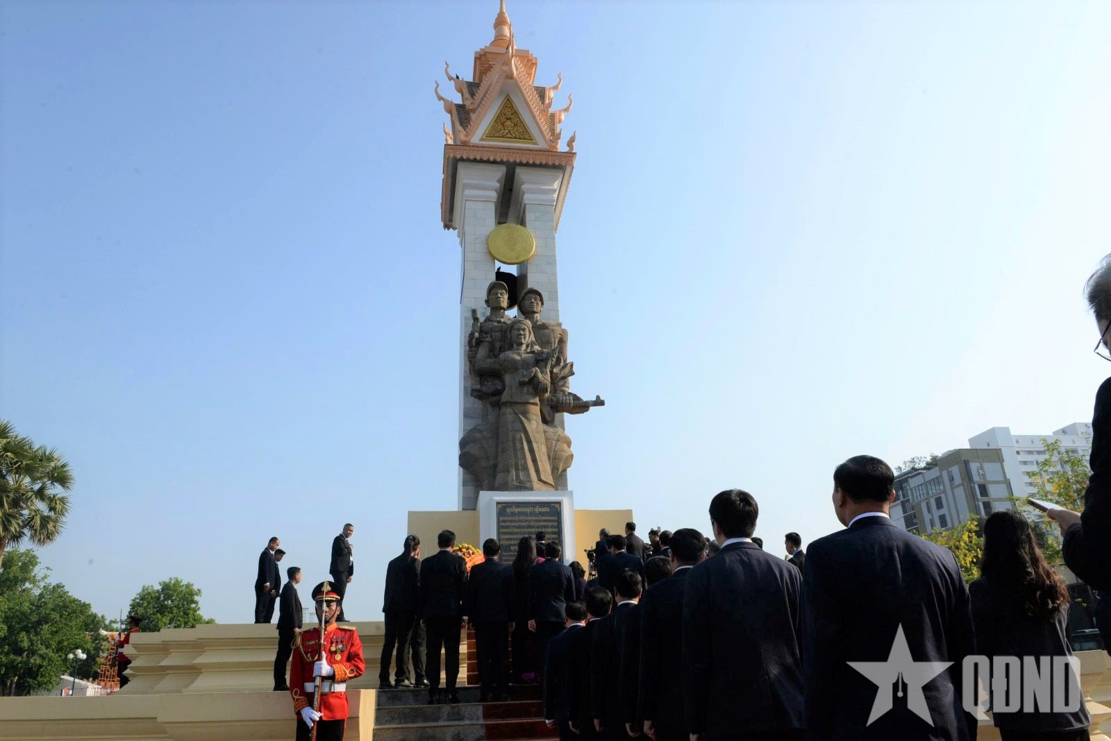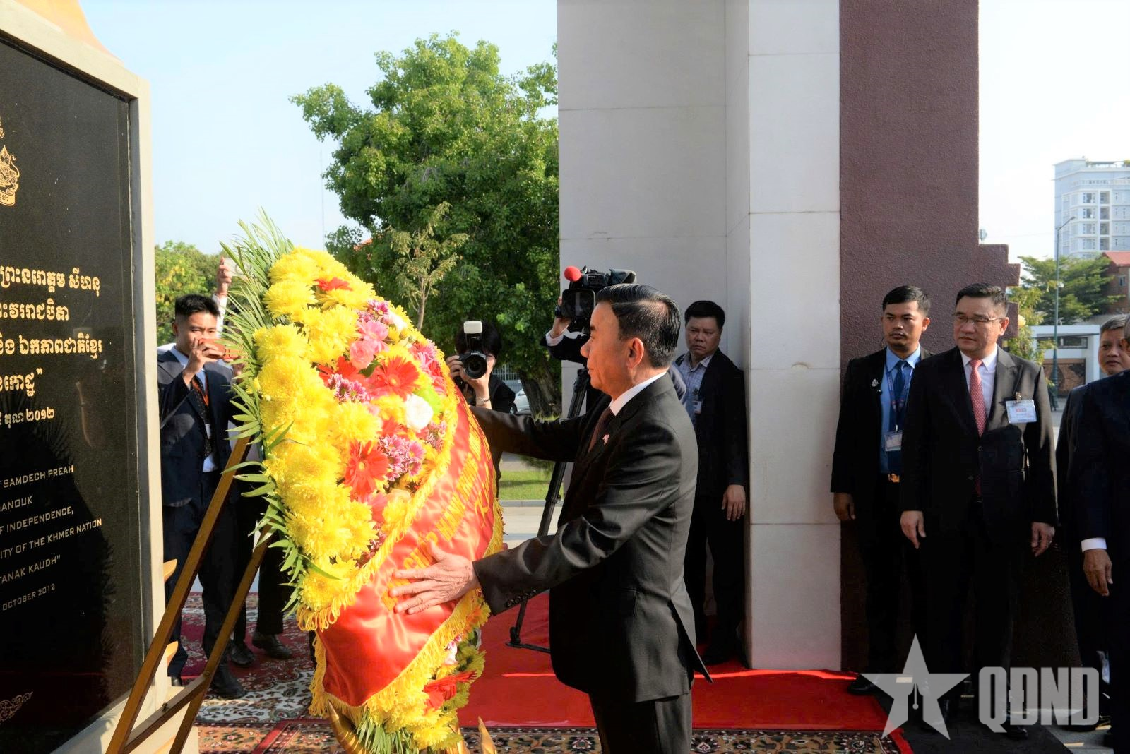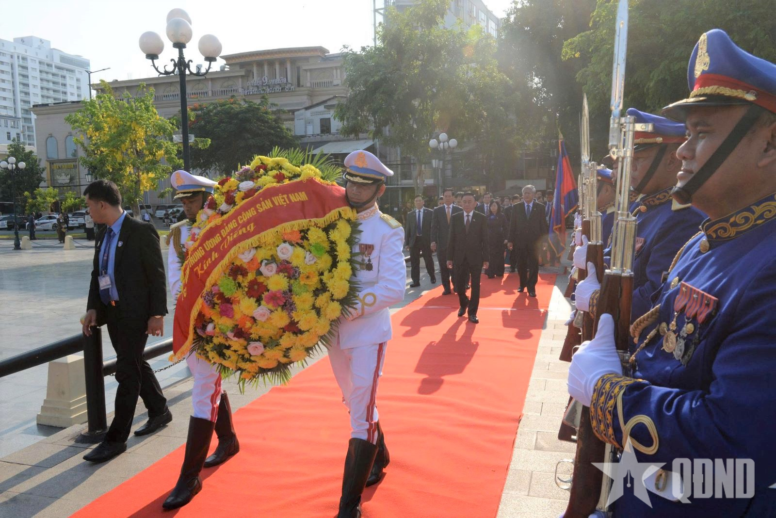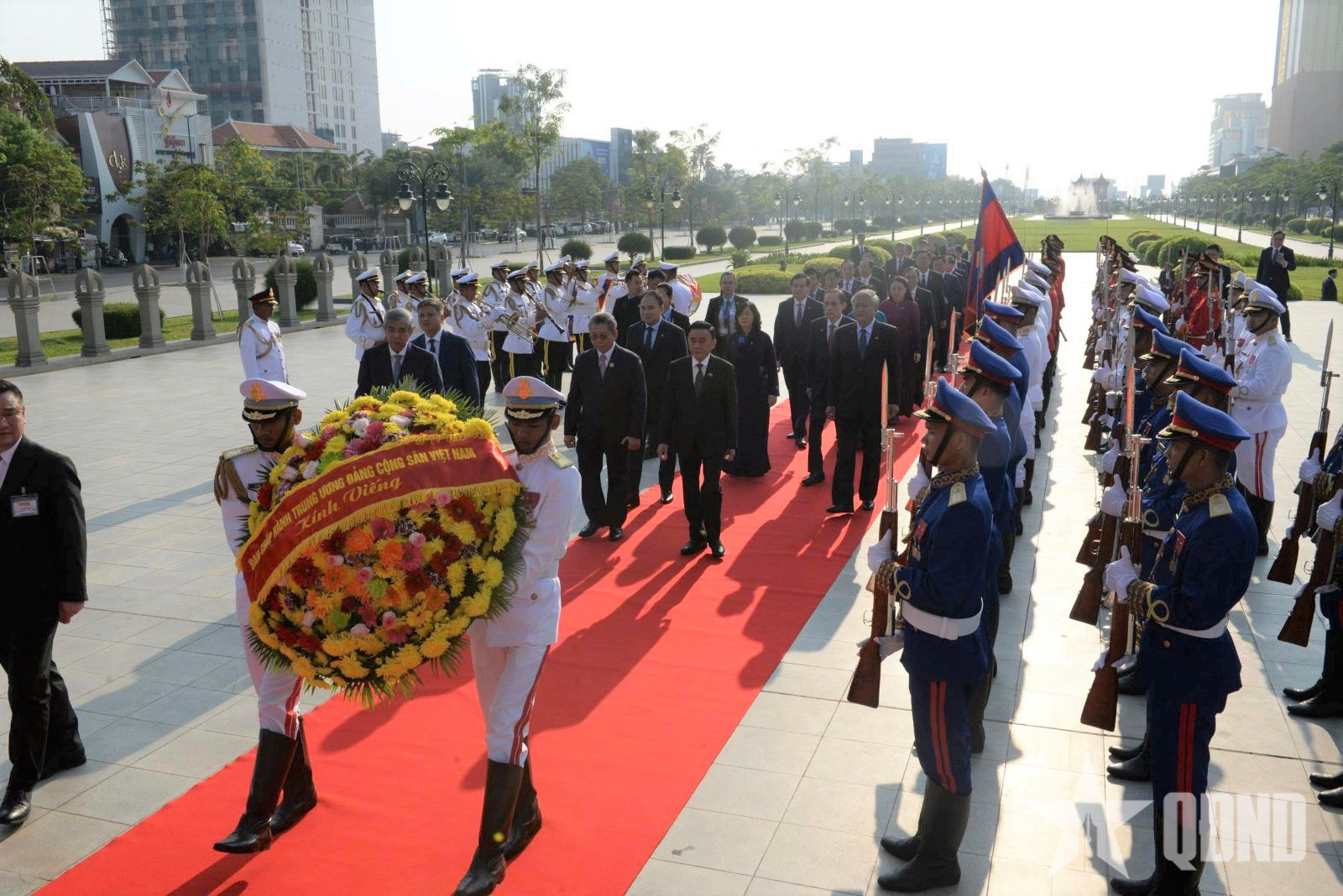 Thường trực Ban Bí thư đặt vòng hoa tại Đài tưởng niệm cố Quốc vương Norodom Sihanouk.