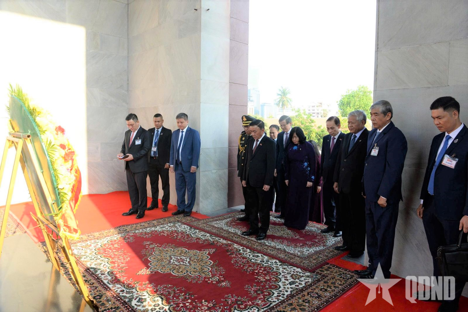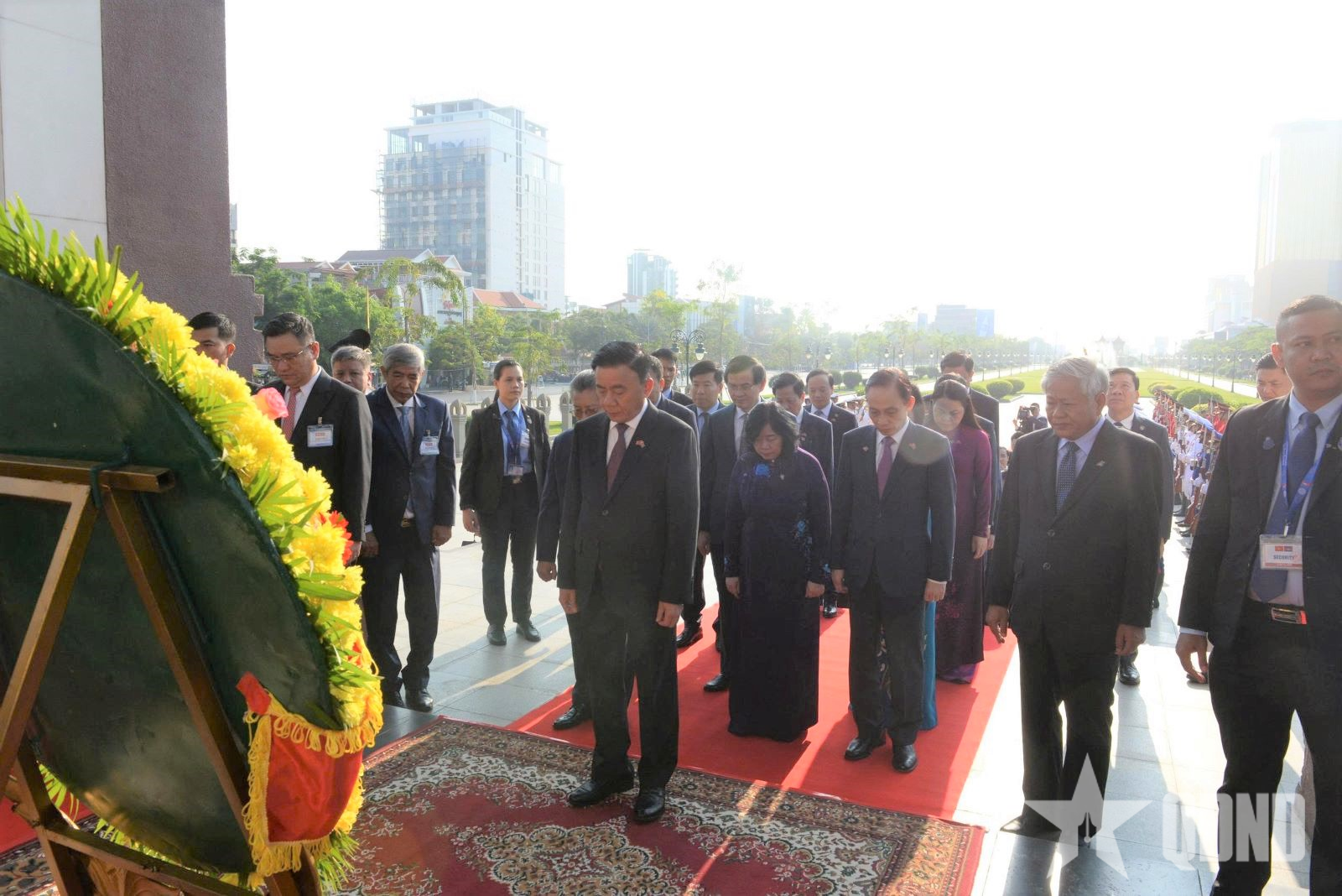 Thường trực Ban Bí thư Trần Cẩm Tú đặt vòng hoa tại Đài Hữu nghị Campuchia - Việt Nam.