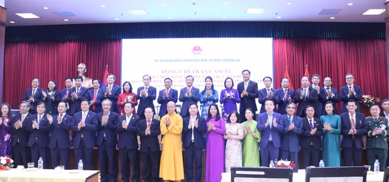 Cùng dự có các đồng chí Ủy viên Bộ Chính trị: Bùi Thị Minh Hoài, Bí thư Trung ương Đảng, Chủ tịch Ủy ban Trung ương Mặt trận Tổ quốc Việt Nam; Lê Hoài Trung, Bộ trưởng Ngoại giao; Đoàn Minh Huấn, Giám đốc Học viện Chính trị quốc gia Hồ Chí Minh; đồng chí Nguyễn Thị Thanh, Ủy viên Trung ương Đảng, Phó Chủ tịch Quốc hội; và đại biểu Đoàn đại biểu cấp cao Việt Nam; đại diện các hội đoàn người Việt Nam tại Lào, các trí thức, doanh nhân, lưu học sinh và kiều bào tiêu biểu.