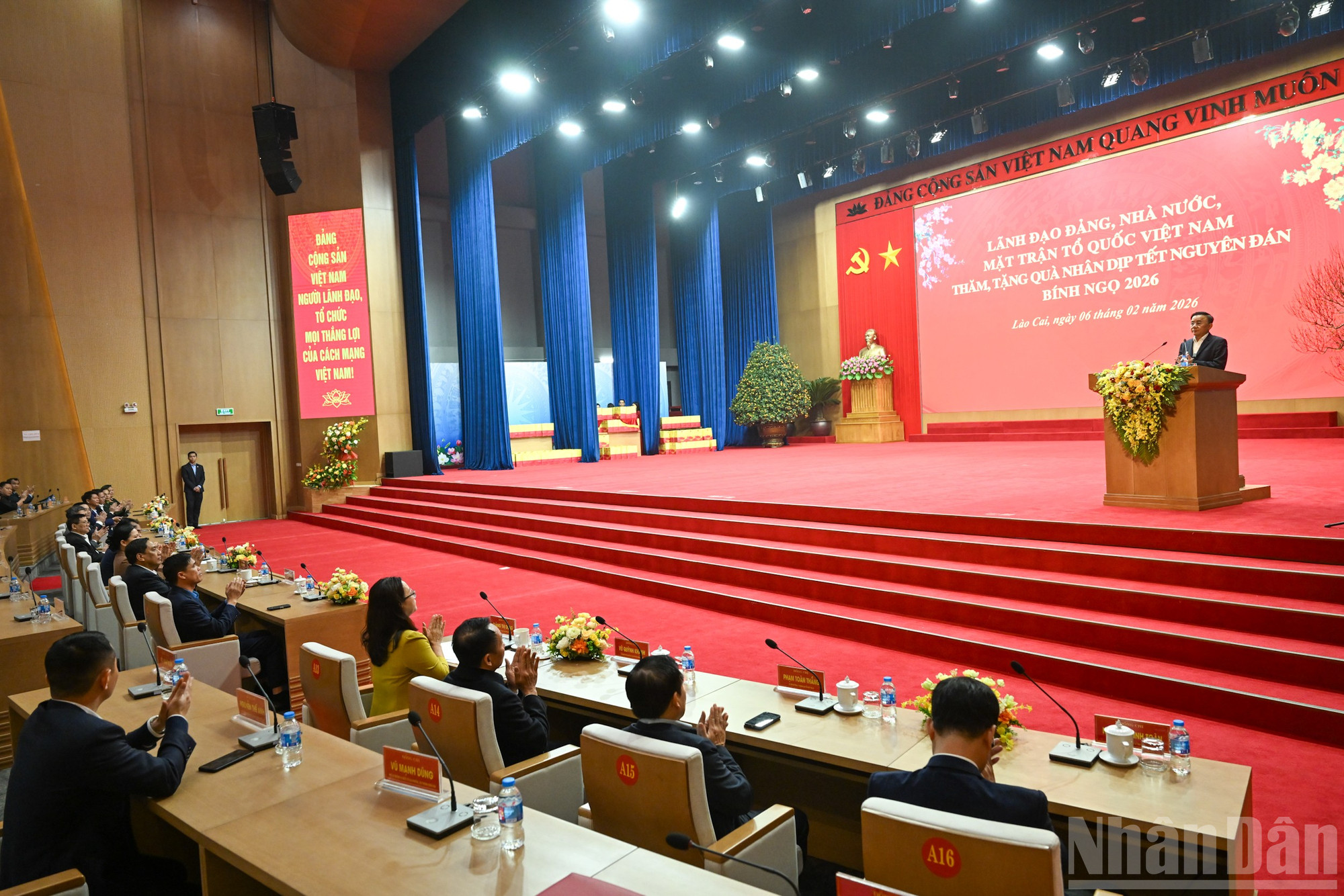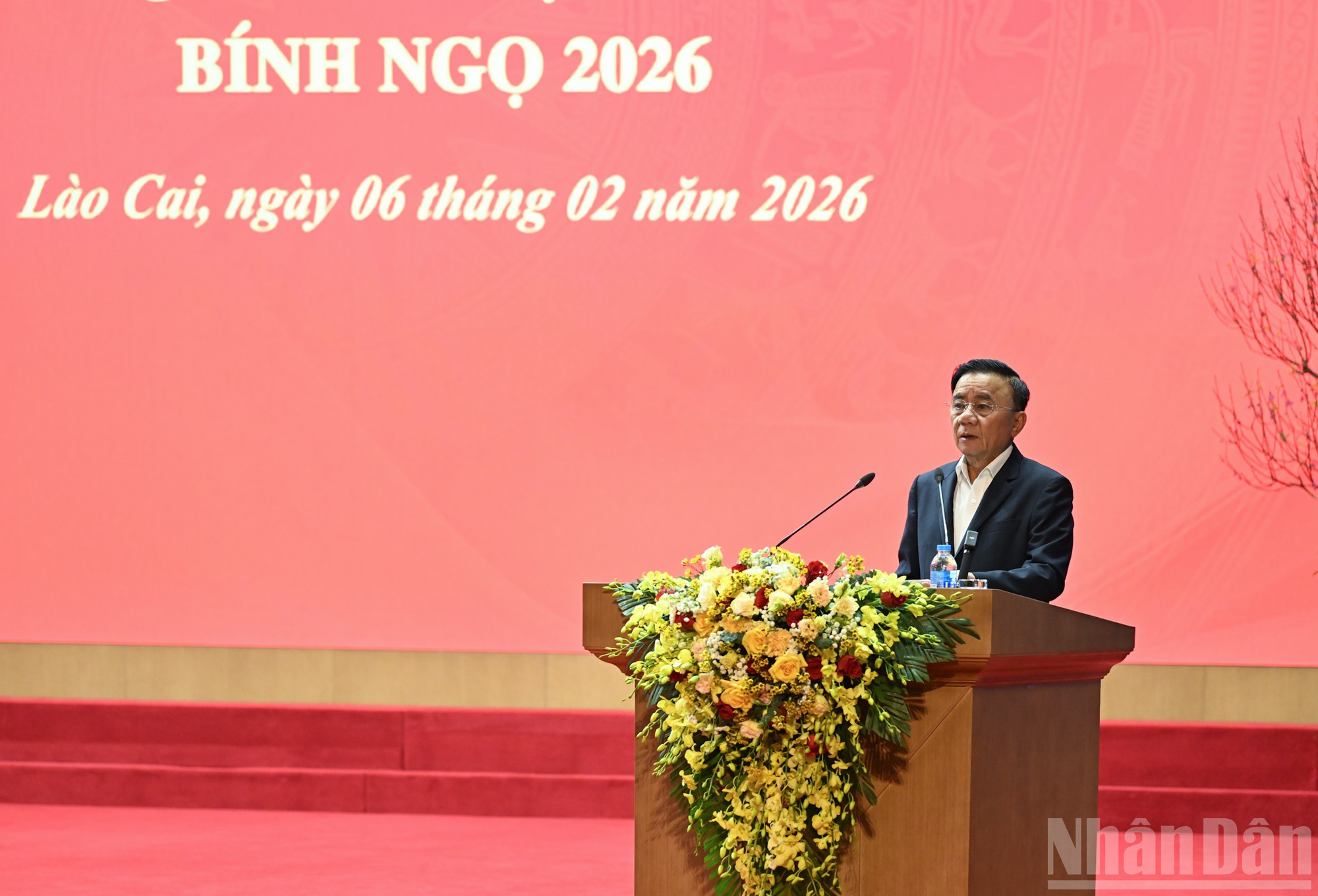 Nhân dịp Tết Nguyên đán Bính Ngọ 2026, Thường trực Ban Bí thư Trần Cẩm Tú cùng Đoàn công tác Trung ương đã tới thăm, tặng quà gia đình chính sách, hộ nghèo, công nhân lao động có hoàn cảnh khó khăn và cán bộ, chiến sĩ lực lượng vũ trang tỉnh Lào Cai. (Ảnh: DUY LINH)