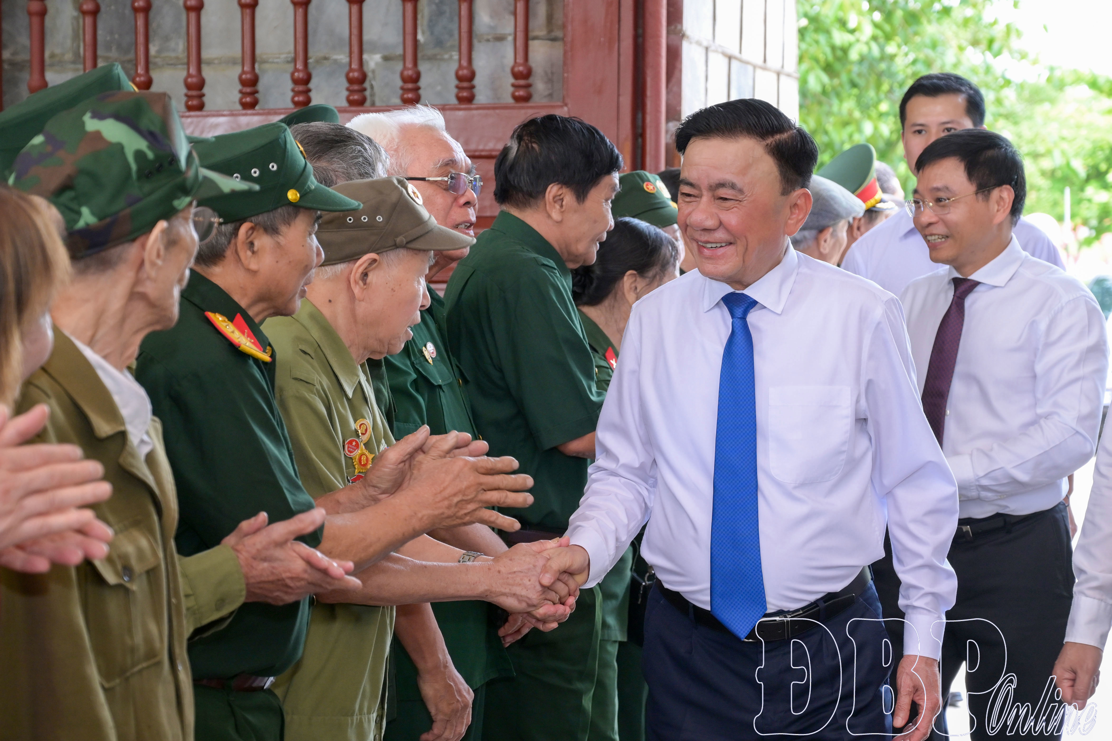 Thường trực Ban Bí thư Trần Cẩm Tú thăm hỏi các cựu chiến binh.
