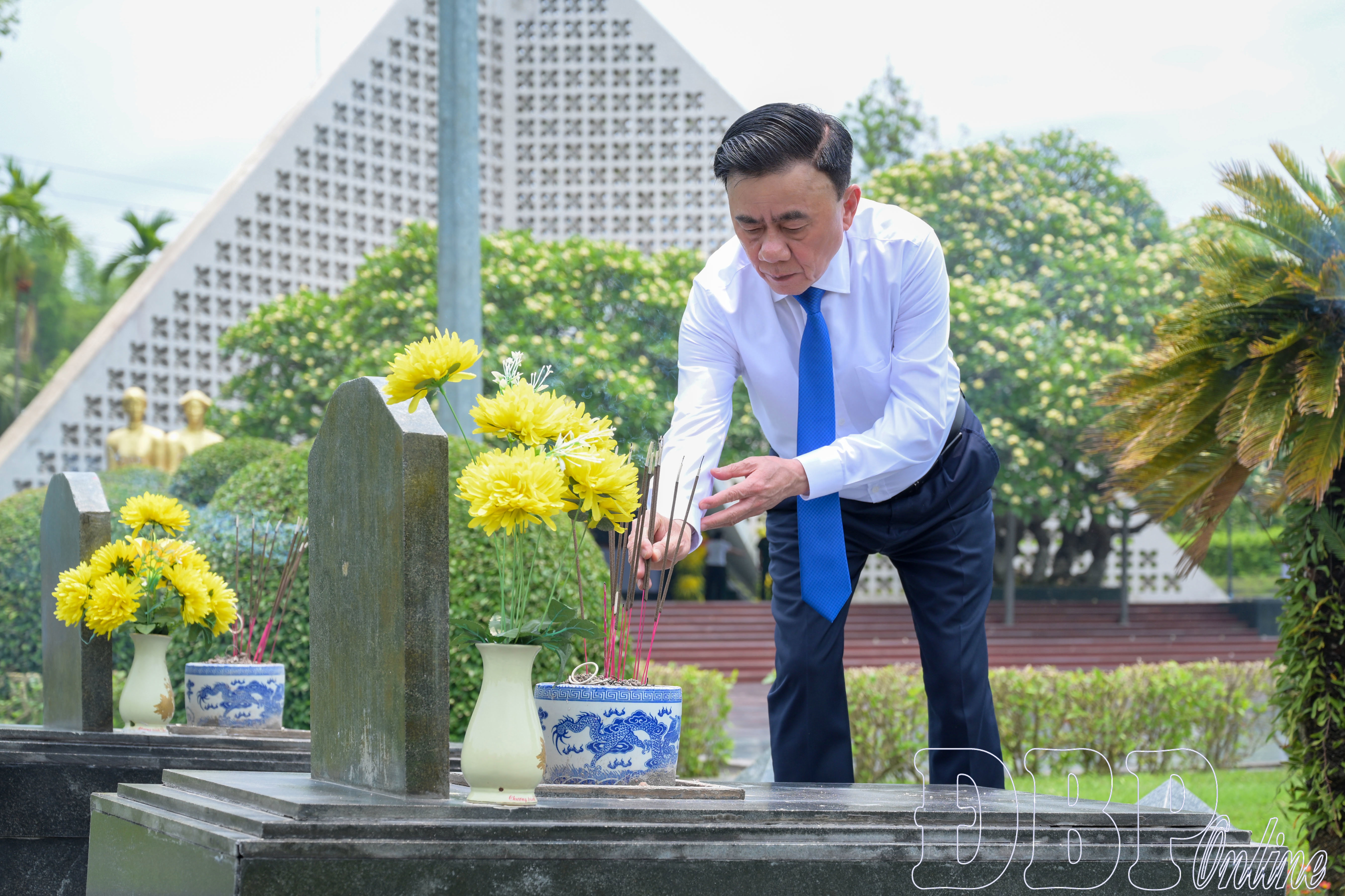 Thường trực Ban Bí thư Trần Cẩm Tú thắp hương lên từng phần mộ tại Nghĩa trang Liệt sĩ Quốc gia A1.