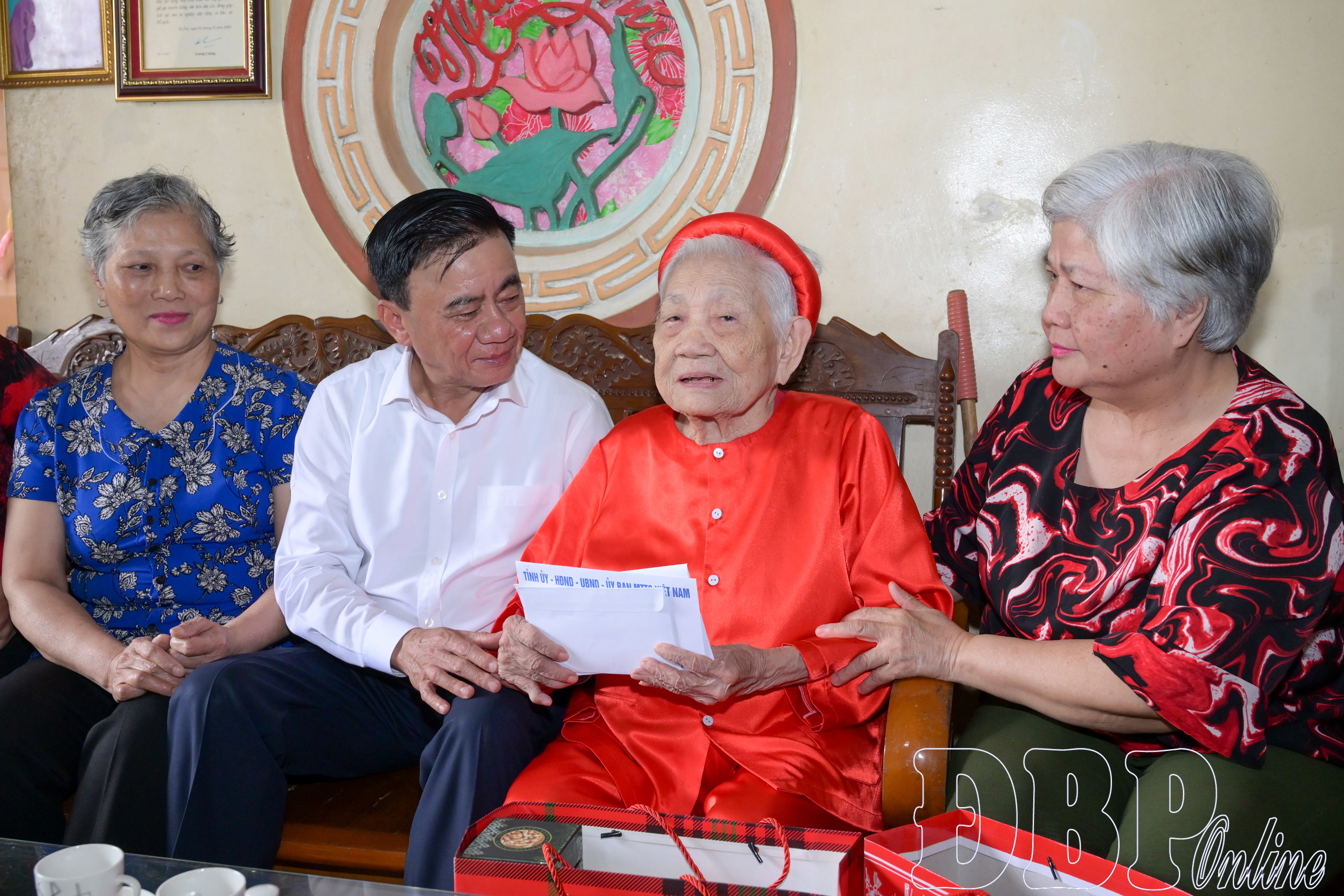 Tiếp đó, đồng chí Trần Cẩm Tú, Thường trực Ban Bí thư cùng đoàn công tác đã đến thăm, tặng quà 2 gia đình chính sách trên địa bàn phường Điện Biên Phủ, gồm: Bà Vũ Thị Dần (sinh năm 1925) - mẹ liệt sĩ Đỗ Văn Thử (1952 - 1971), hi sinh tại Mặt trận phía Tây; gia đình ông Đinh Văn Bán (sinh năm 1955), thương binh 45%.