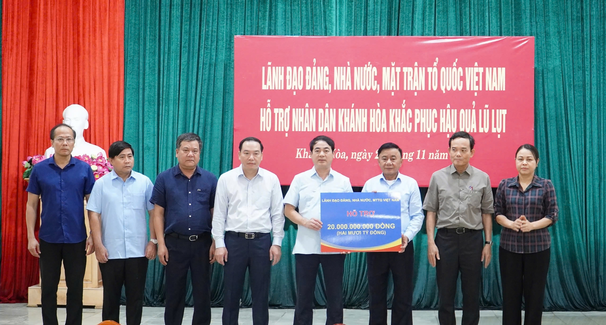 Thay mặt lãnh đạo Đảng, Nhà nước, MTTQ Việt Nam, Thường trực Ban Bí thư trao 20 tỷ đồng hỗ trợ tỉnh Khánh Hòa.