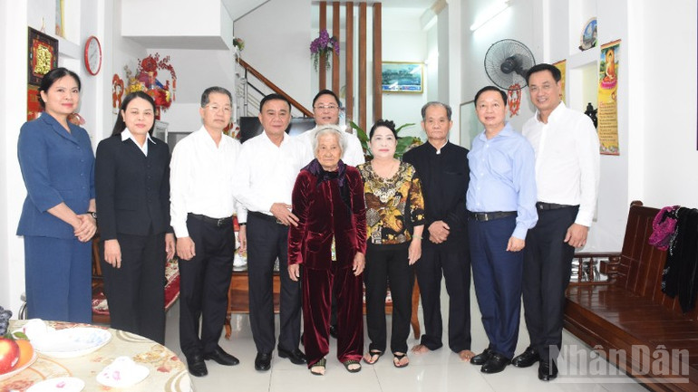Thường trực Ban Bí thư và đoàn công tác thăm, chúc Tết Mẹ Việt Nam Anh hùng Nguyễn Thị Sự.