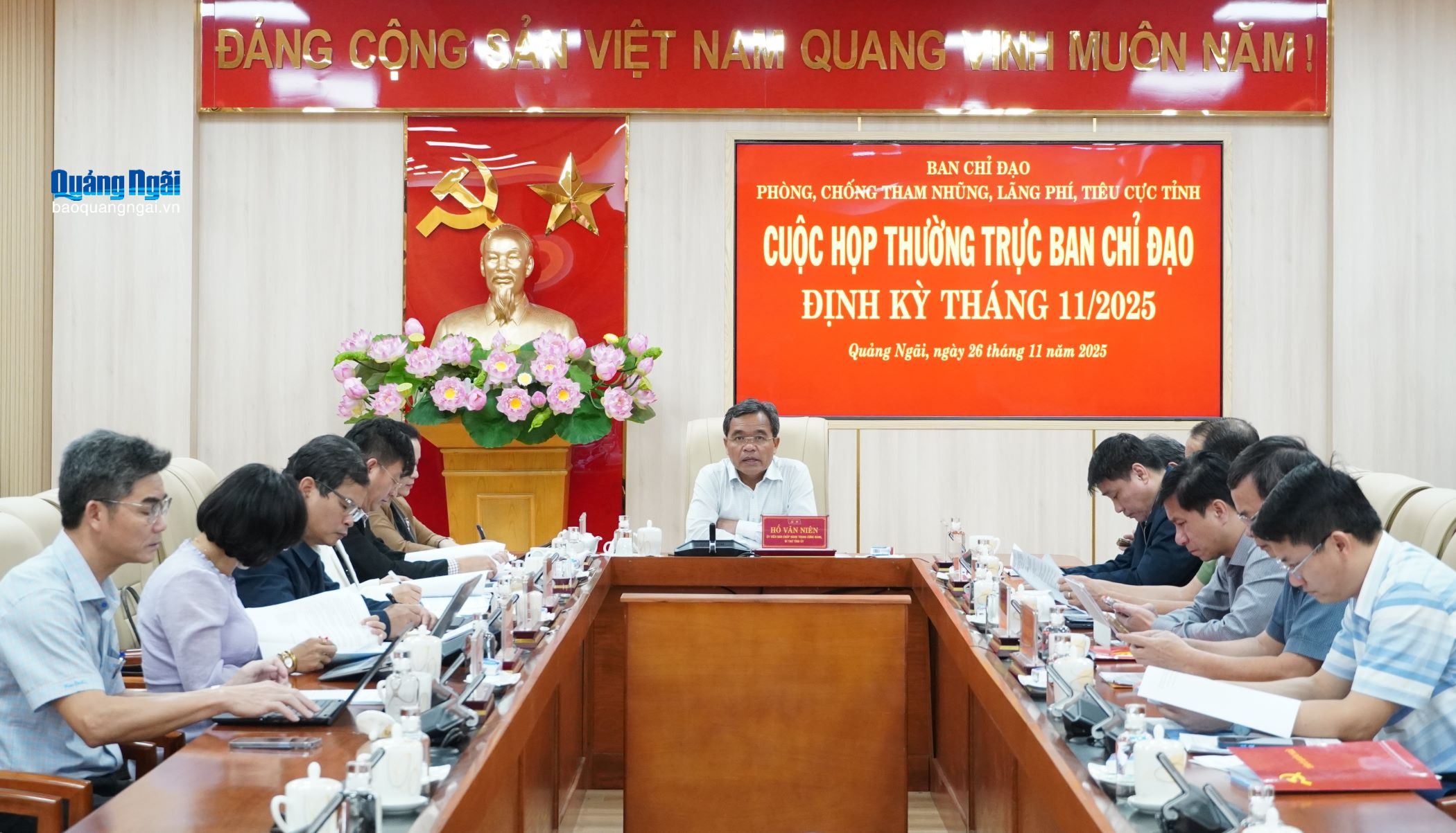 Chiều 26/11, Ủy viên Trung ương Đảng, Bí thư Tỉnh ủy Hồ Văn Niên chủ trì cuộc họp Thường trực Ban Chỉ đạo phòng, chống tham nhũng (PCTN), lãng phí, tiêu cực định kỳ tháng 11/2025 để đánh giá kết quả hoạt động tháng 11, nhiệm vụ trọng tâm tháng 12/2025 của Ban Chỉ đạo.