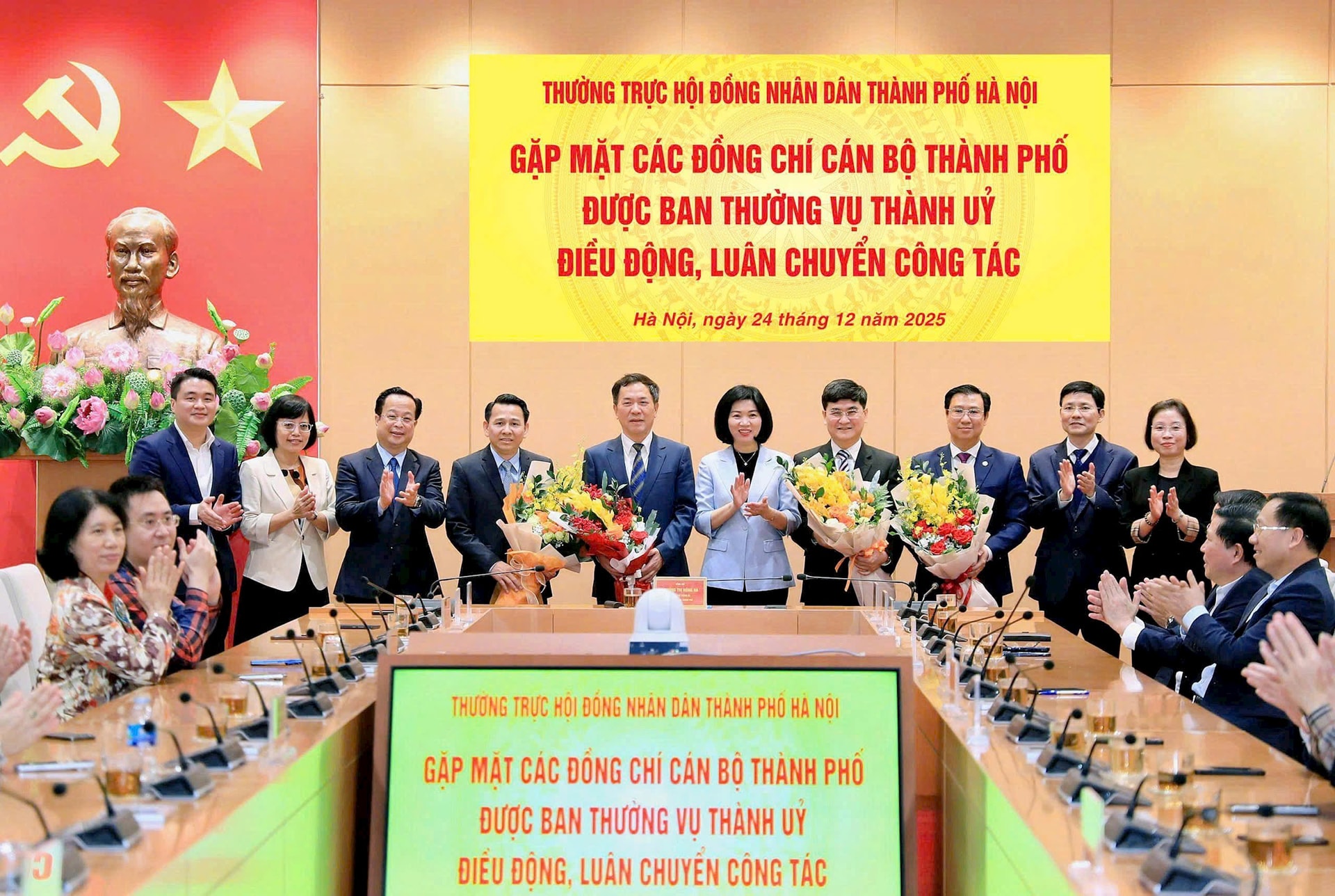 Thường trực HĐND thành phố Hà Nội chúc mừng các đồng chí nhận nhiệm vụ mới. Ảnh: Quang Thái