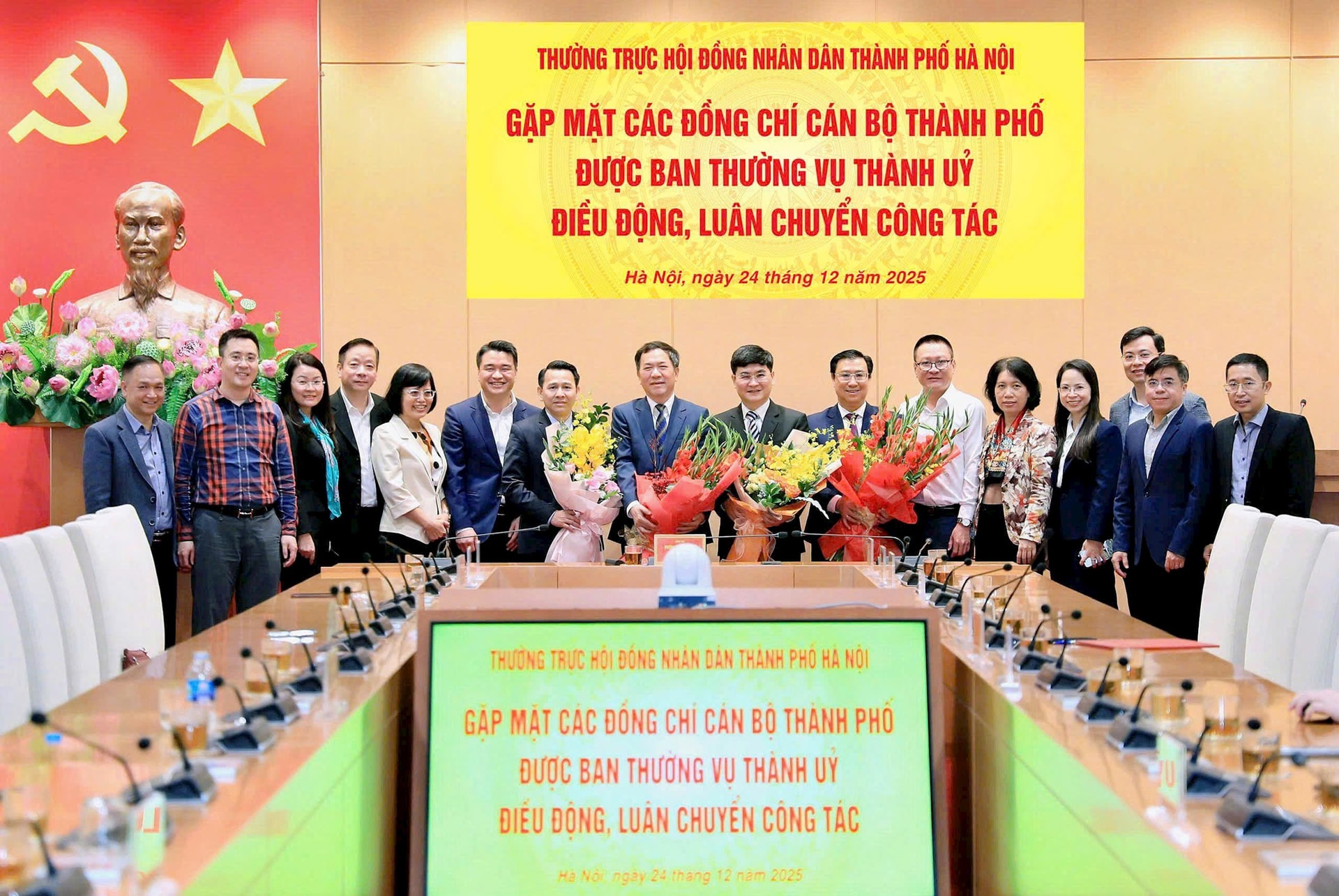 Các đồng chí gồm: Đỗ Văn Trường (sinh năm 1977) - Chánh Văn phòng Đoàn đại biểu Quốc hội và HĐND thành phố; Nguyễn Tuấn Thịnh (sinh năm 1971) - Đại biểu Quốc hội chuyên trách Đoàn đại biểu Quốc hội thành phố Hà Nội khóa XV; Đàm Văn Huân (sinh năm 1968) - Trưởng ban Đô thị HĐND thành phố nhiệm kỳ 2021-2026; Bạch Liên Hương (sinh năm 1975) - Thành ủy viên, Giám đốc Sở Văn hóa và Thể thao thành phố (ứng cử để bầu giữ chức vụ Trưởng ban Văn hóa - Xã hội, HĐND thành phố nhiệm kỳ 2021-2026 và nhiệm kỳ 2026-2031); Nguyễn Thanh Bình (sinh năm 1976) - Trưởng ban Văn hóa - Xã hội, HĐND thành phố, nhiệm kỳ 2021-2026.