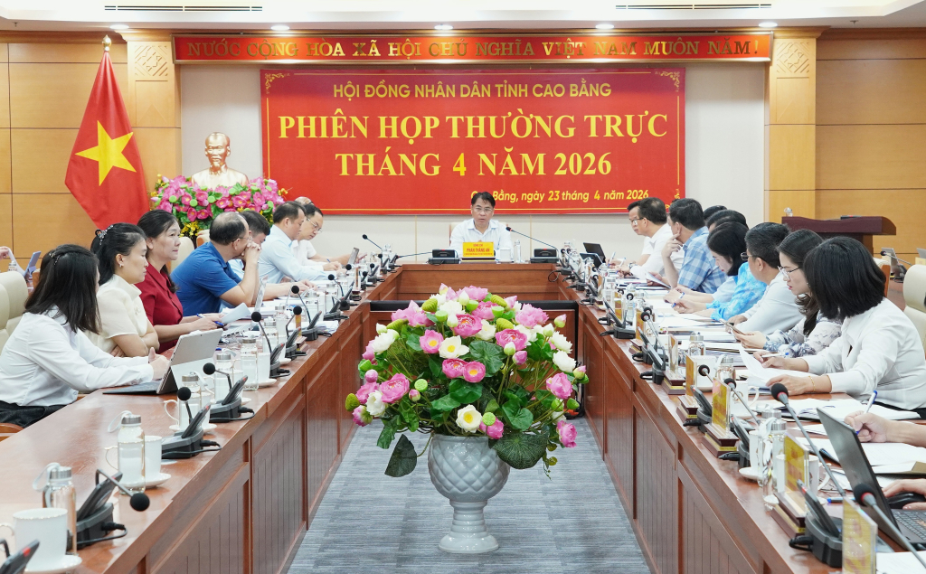 Phiên họp tiến hành giải quyết nội dung phát sinh giữa hai kỳ họp HĐND tỉnh. Xem xét, cho ý kiến một số nội dung theo Tờ trình số 1070/TTr-UBND, ngày 12/4/2026 của UBND tỉnh về Đề nghị xây dựng Nghị quyết Quy định nguyên tắc, tiêu chí, định mức phân bổ vốn ngân sách Trung ương và tỷ lệ vốn đối ứng của ngân sách địa phương thực hiện Chương trình Mục tiêu quốc gia về phát triển văn hóa giai đoạn 2025 - 2035 trên địa bàn tỉnh Cao Bằng, giai đoạn 1: từ năm 2025 đến năm 2030; Tờ trình 860/TTr-UBND, ngày 27/3/2026 của UBND tỉnh về Ban hành danh mục Nghị quyết của HĐND tỉnh quy định chi tiết các luật, nghị quyết được Quốc hội khóa XV thông qua tại Kỳ họp thứ 10; Báo cáo tiến độ xây dựng dự thảo Nghị quyết trình Kỳ họp thứ 3 (chuyên đề).