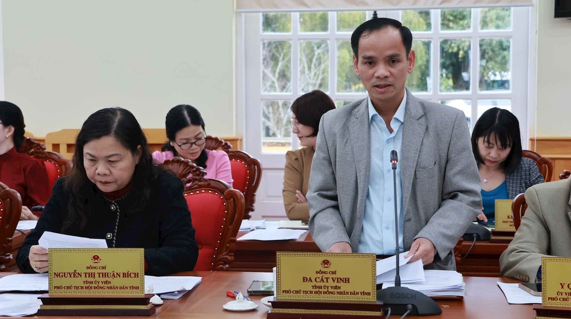 Phó Chủ tịch HĐND tỉnh Lâm Đồng Đa Cát Vinh phát biểu tại phiên họp