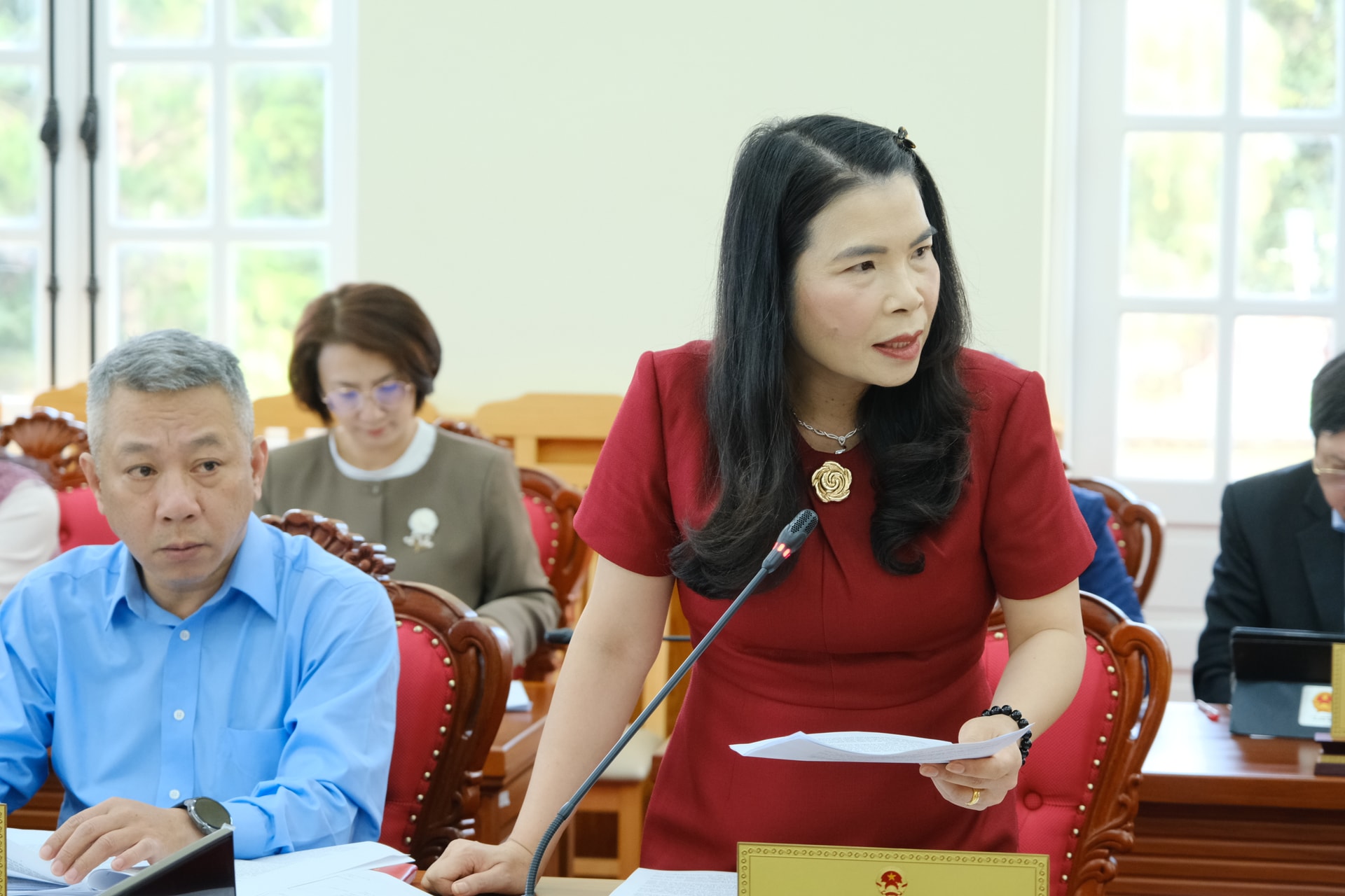 Đồng chí Phạm Thị Tường Vân, Trưởng Ban Kinh tế - Ngân sách HĐND tỉnh Lâm Đồng phát biểu tại Phiên họp