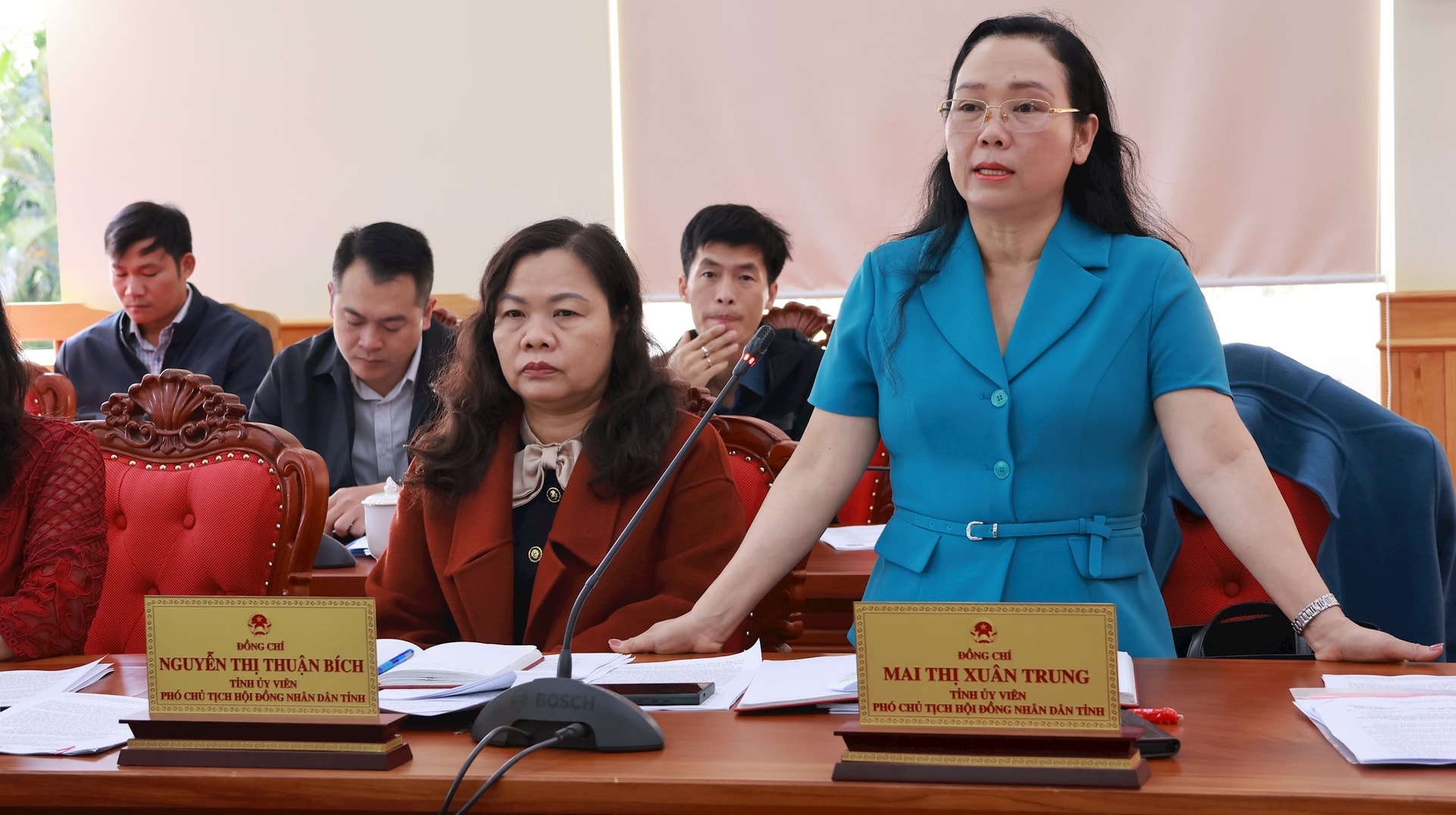 Phó Chủ tịch HĐND tỉnh, Trưởng Ban Pháp chế, HĐND tỉnh Lâm Đồng Mai Thị Xuân Trung phát biểu tại Phiên họp