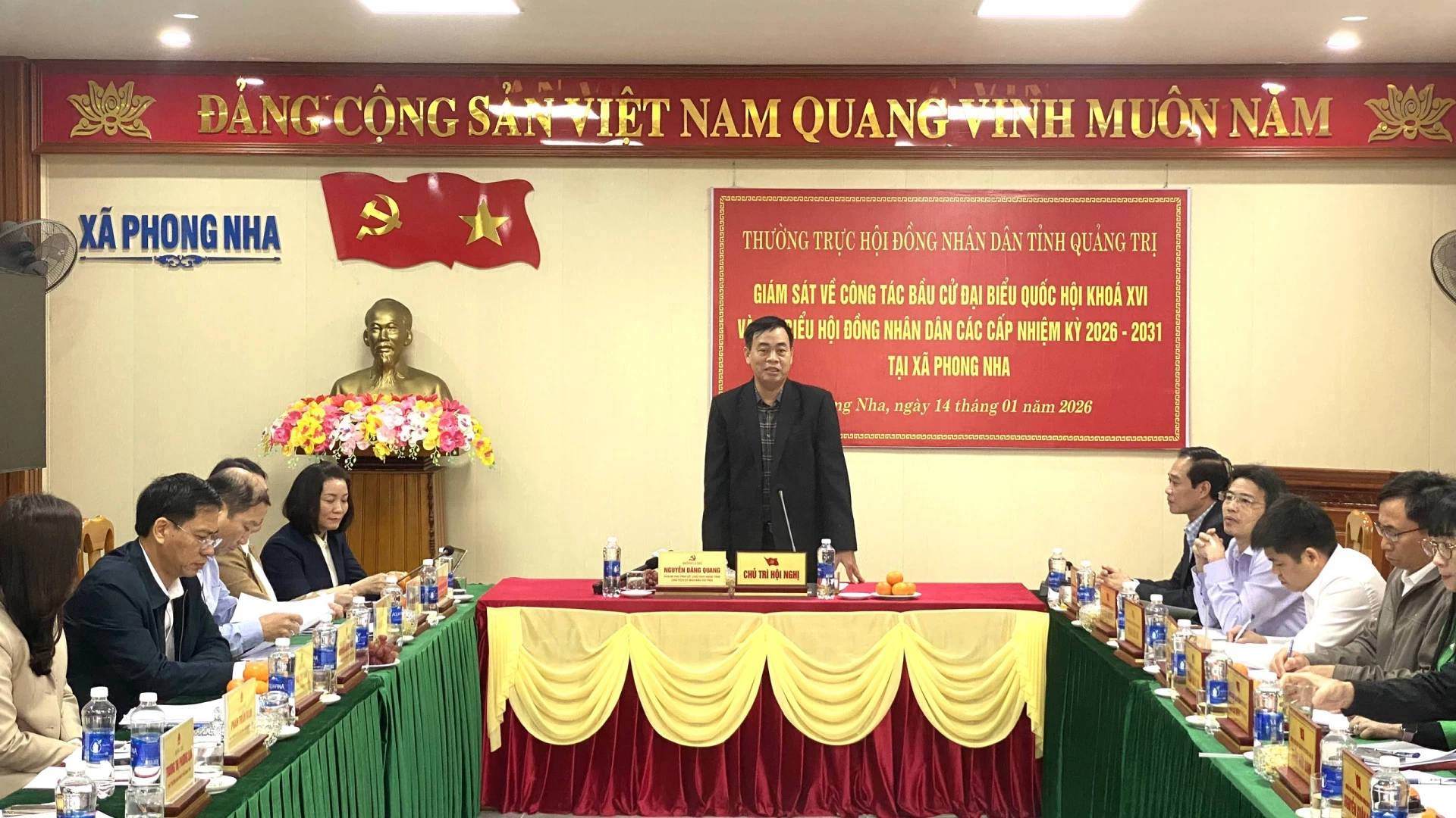 Sau khi nghe ý kiến của các thành viên trong đoàn, phát biểu kết luận buổi làm việc, đồng chí Nguyễn Đăng Quang, Phó Bí thư Tỉnh ủy, Chủ tịch HĐND tỉnh đề nghị xã Phong Nha coi công tác bầu cử là nhiệm vụ chính trị đặc biệt quan trọng. Xã cần chủ động rà soát kỹ lưỡng từng khâu, phân công "rõ người, rõ việc, rõ trách nhiệm", không để xảy ra sai sót hay bị động trong mọi tình huống. Chủ động nắm chắc địa bàn, nhất là các khu vực du lịch, vùng giáo; bảo vệ an toàn cho Đại hội XIV của Đảng và cuộc bầu cử ĐBQH, HĐND các cấp.