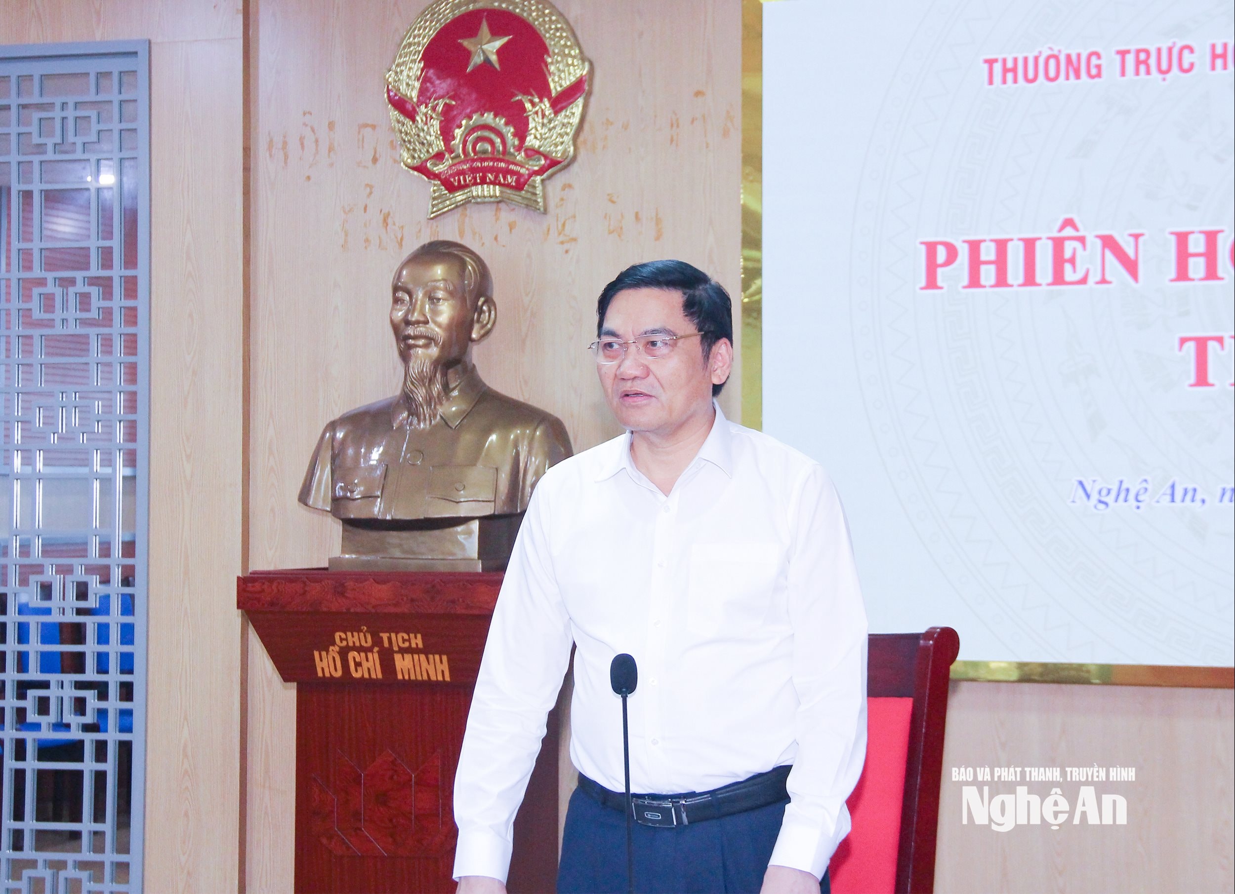 Đồng chí Hoàng Nghĩa Hiếu - Phó Bí thư Thường trực Tỉnh ủy, Chủ tịch HĐND tỉnh kết luận tại phiên họp. Ảnh: Mai Hoa