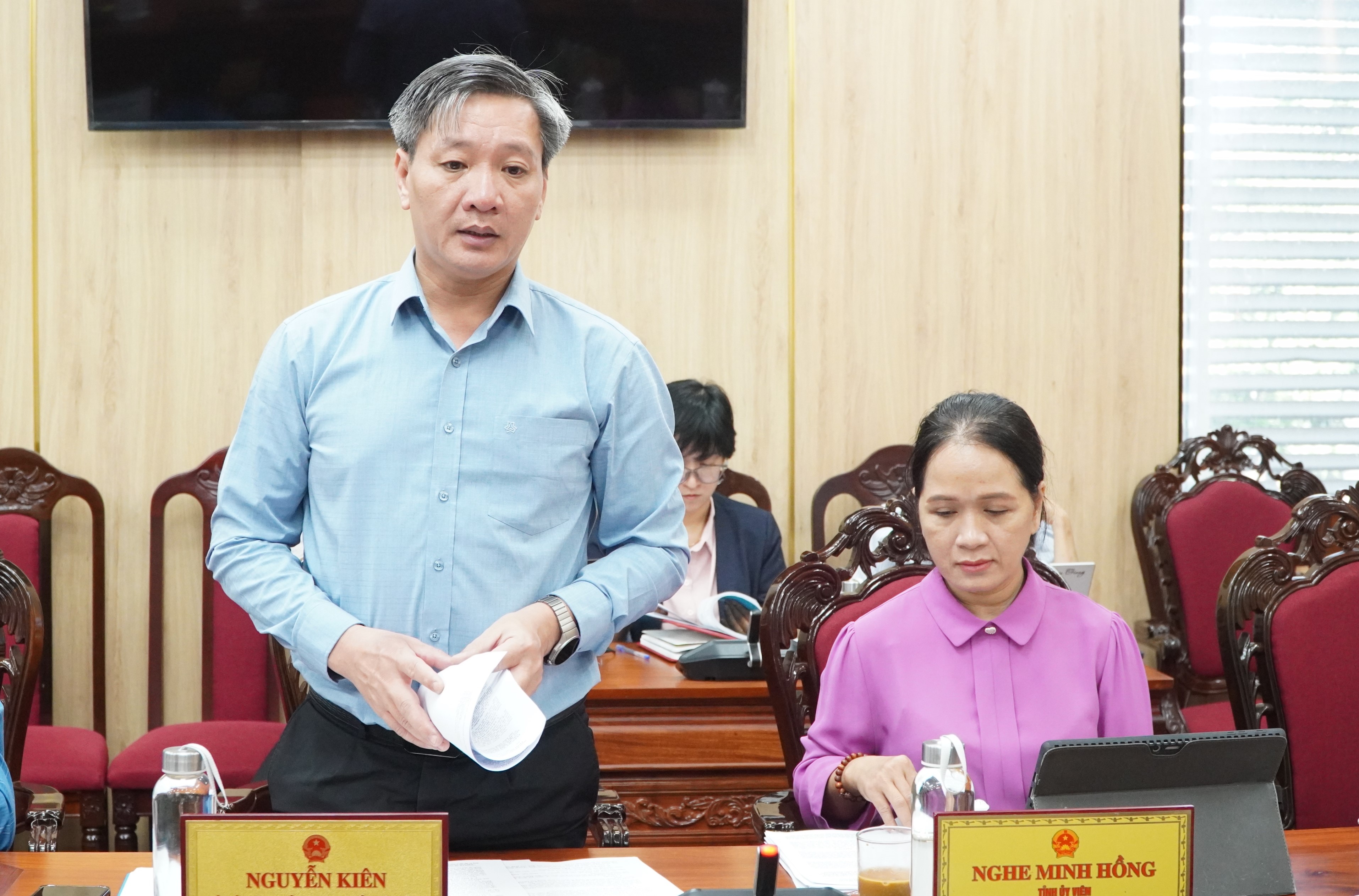 Trưởng Ban Kinh tế - Ngân sách HĐND tỉnh Nguyễn Kiên nêu ý kiến thẩm tra đối với tờ trình của UBND tỉnh.