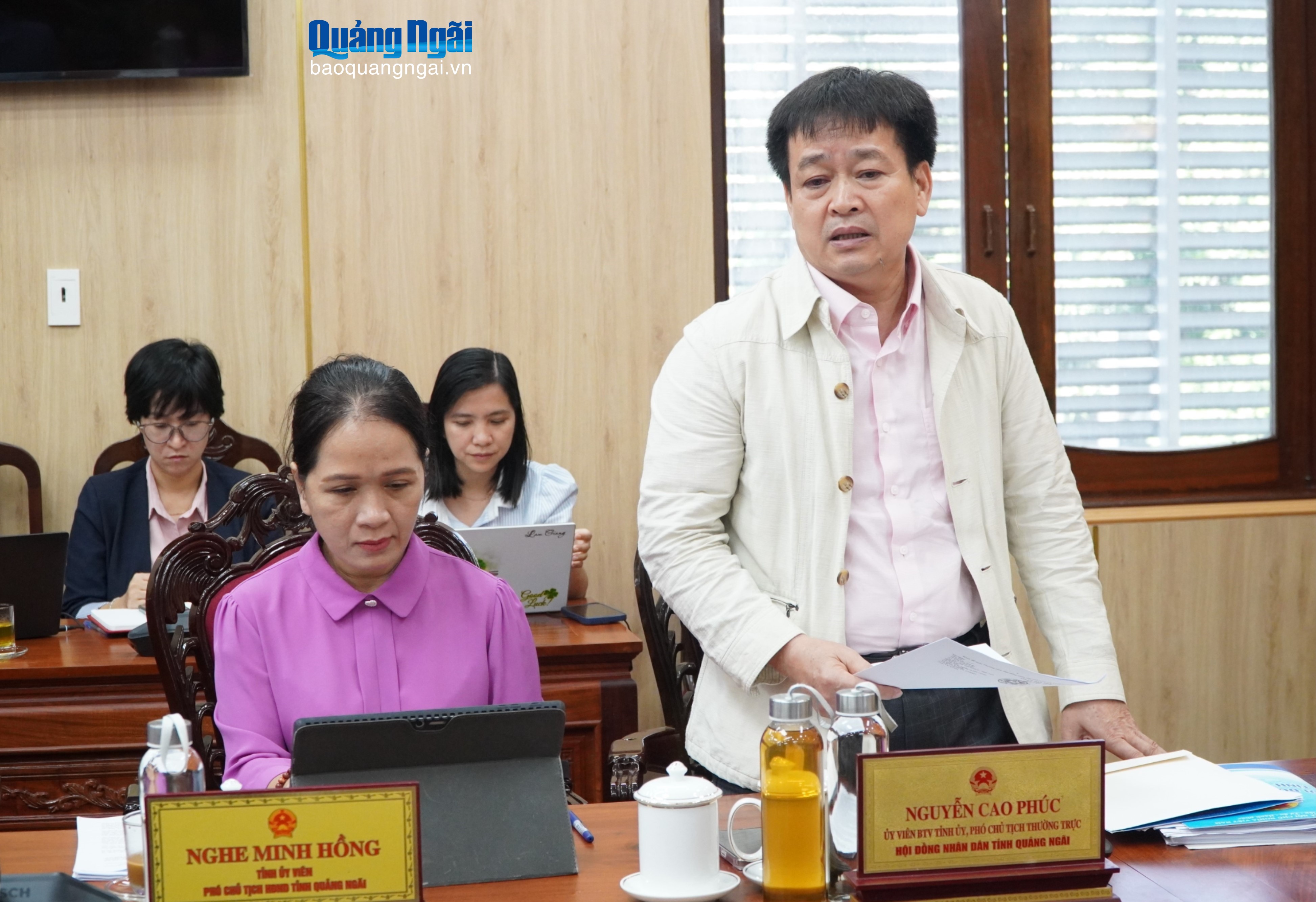 Ủy viên Ban Thường vụ Tỉnh ủy, Phó Chủ tịch Thường trực HĐND tỉnh Nguyễn Cao Phúc phát biểu tại cuộc họp.