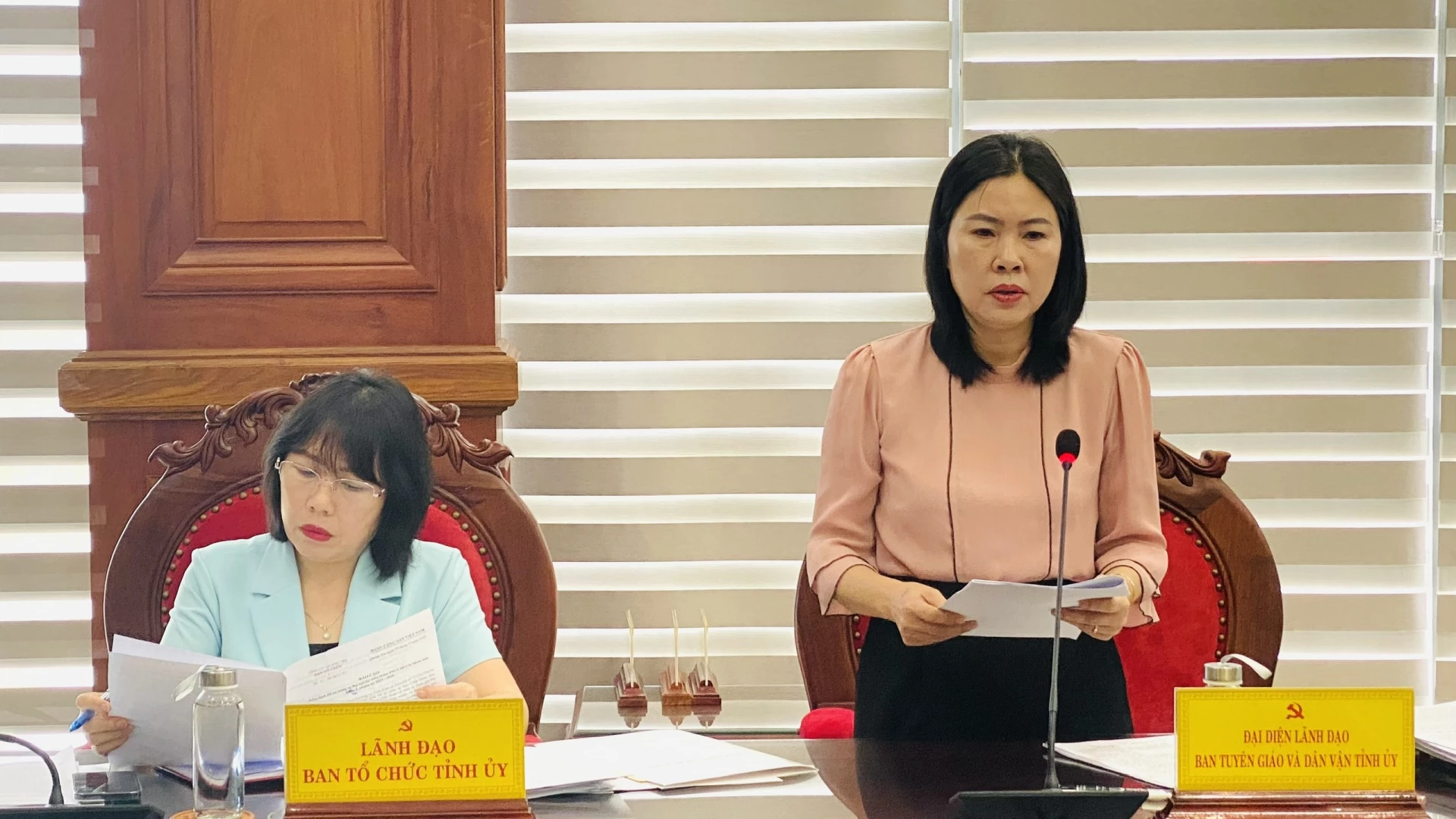 Đại diện lãnh đạo Ban Tuyên giáo và Dân vận Tỉnh ủy góp ý nội dung đại hội - Ảnh: N.L