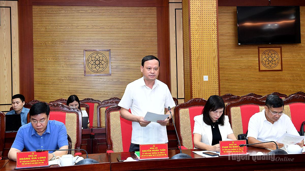 Đồng chí Nguyễn Mạnh Tuấn, Ủy viên Ban Thường vụ Tỉnh ủy, Phó Chủ tịch Thường trực UBND tỉnh thay mặt Ủy Ban Bầu cử tỉnh báo cáo kết quả công tác bầu cử đại biểu Quốc hội khóa XVI và đại biểu HĐND các cấp trên địa bàn tỉnh.