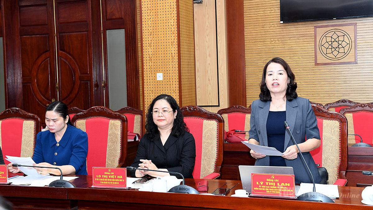 Đồng chí Lý Thị Lan, Ủy viên Ban Thường vụ Tỉnh ủy, Trưởng Đoàn ĐBQH hoạt động chuyên trách khóa XV tỉnh báo cáo công tác chuẩn bị tham dự Kỳ họp thứ Nhất, Quốc hội khóa XVI.